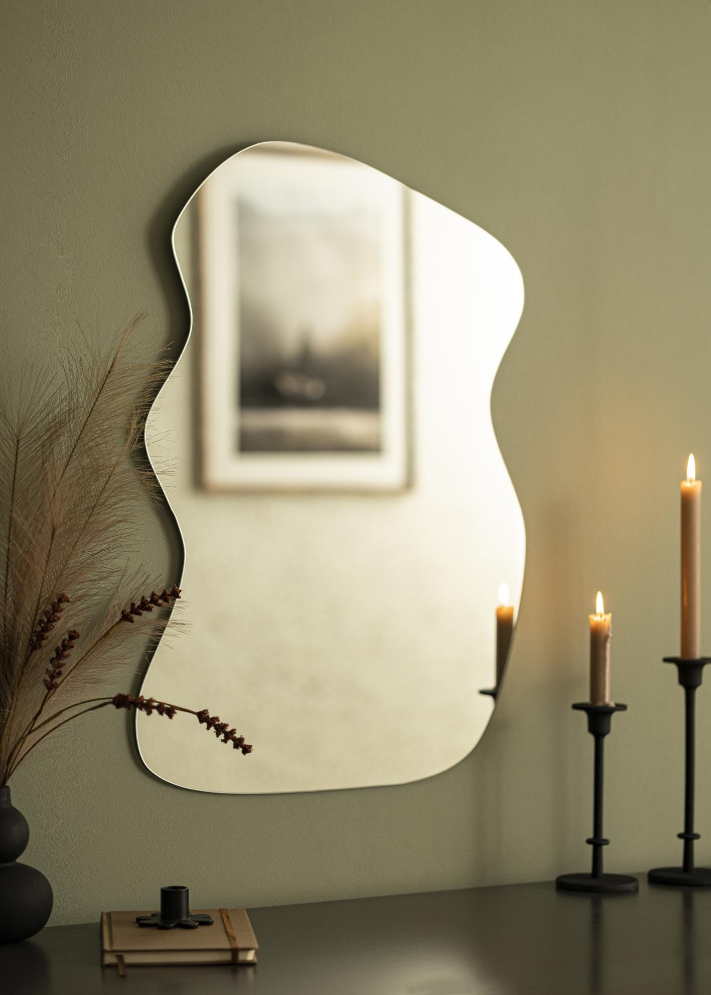 Αυτός είναι ένας εξαιρετικός καθρέφτης τοίχου για εσάς που αναζητάτε τον τέλειο συνδυασμό κλασικής κομψότητας και μοντέρνου στυλ. Το ελαφρώς κυματιστό σχήμα δίνει στον καθρέφτη μια μοναδική και μοντέρνα εμφάνιση, ενώ η απουσία πλαισίου προσθέτει μια επιπλέον πινελιά κομψότητας.