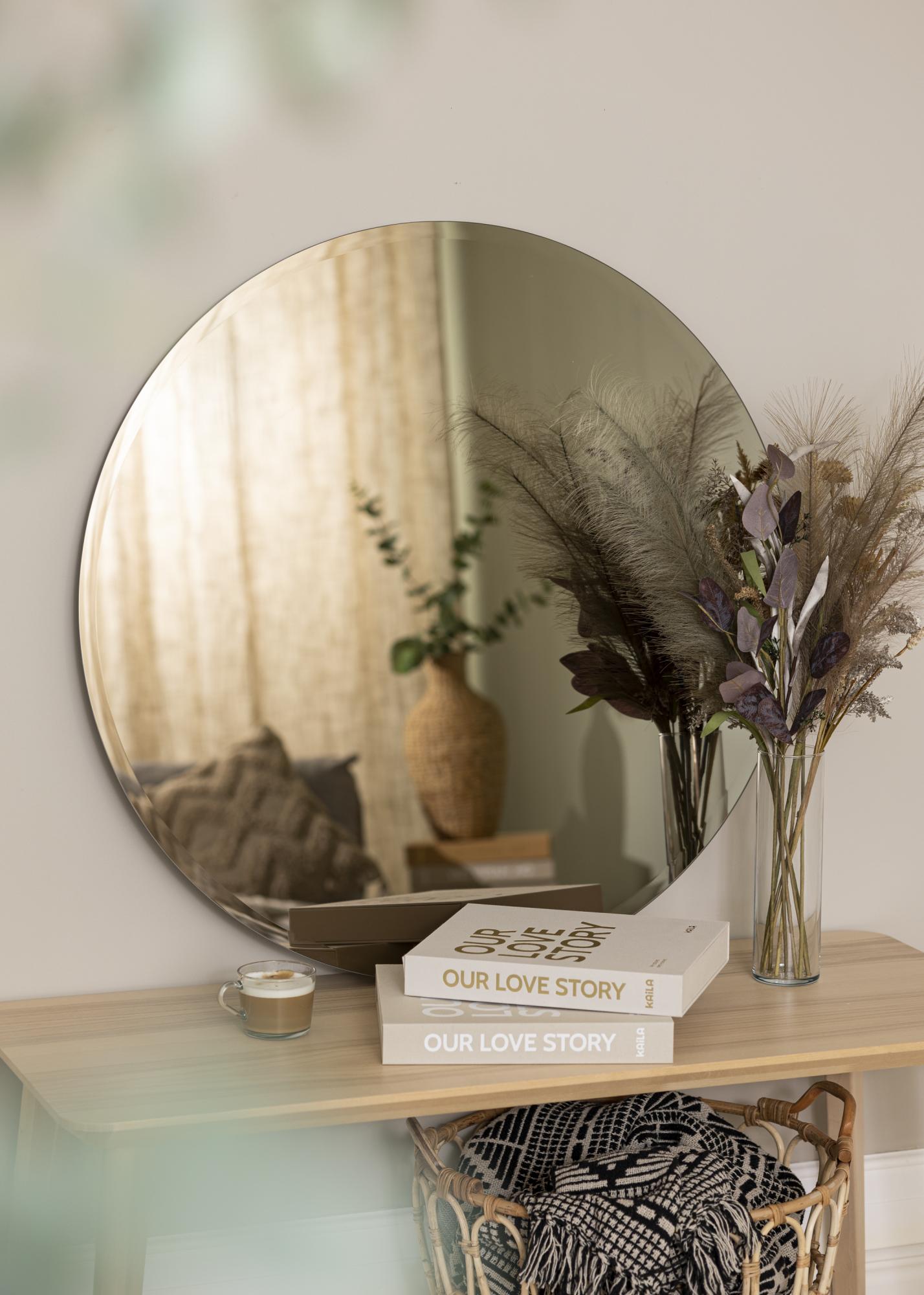 Ένας καθρέφτης σε πιο σκούρα απόχρωση μπρονζέ θα αποτελέσει μια αποκλειστική προσθήκη στο σπίτι σας. Αυτός ο επιτοίχιος καθρέφτης έχει απαλή στρογγυλή μορφή και κομψό καθρέφτη με μπρονζέ τόνους. Η αποκλειστική όψη ολοκληρώνεται με την κομμένη λοξότμητη άκρη. Ο καθρέφτης λειτουργεί εξίσου καλά μόνος του όσο και σε συνδυασμό με άλλους καθρέφτες σε διάφορα μεγέθη και αποχρώσεις.