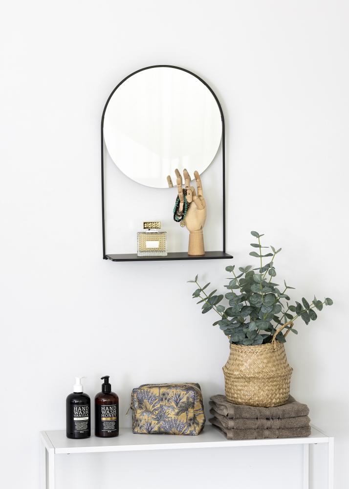 KAILA Κυκλικός Καθρέφτης με ράφι - Μαύρος 35x55 cm