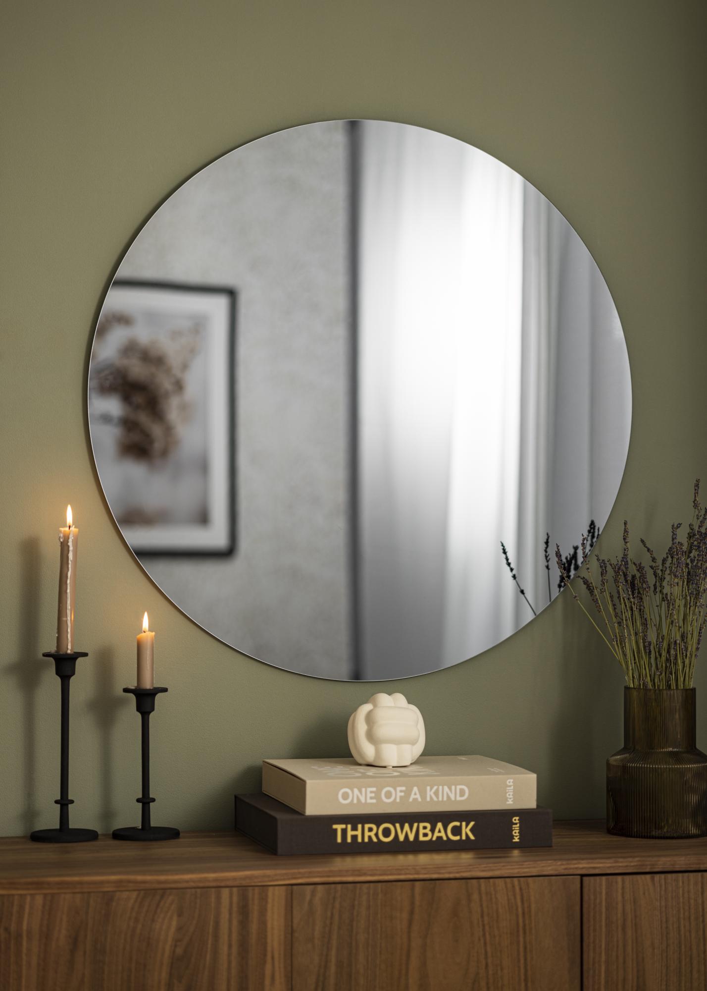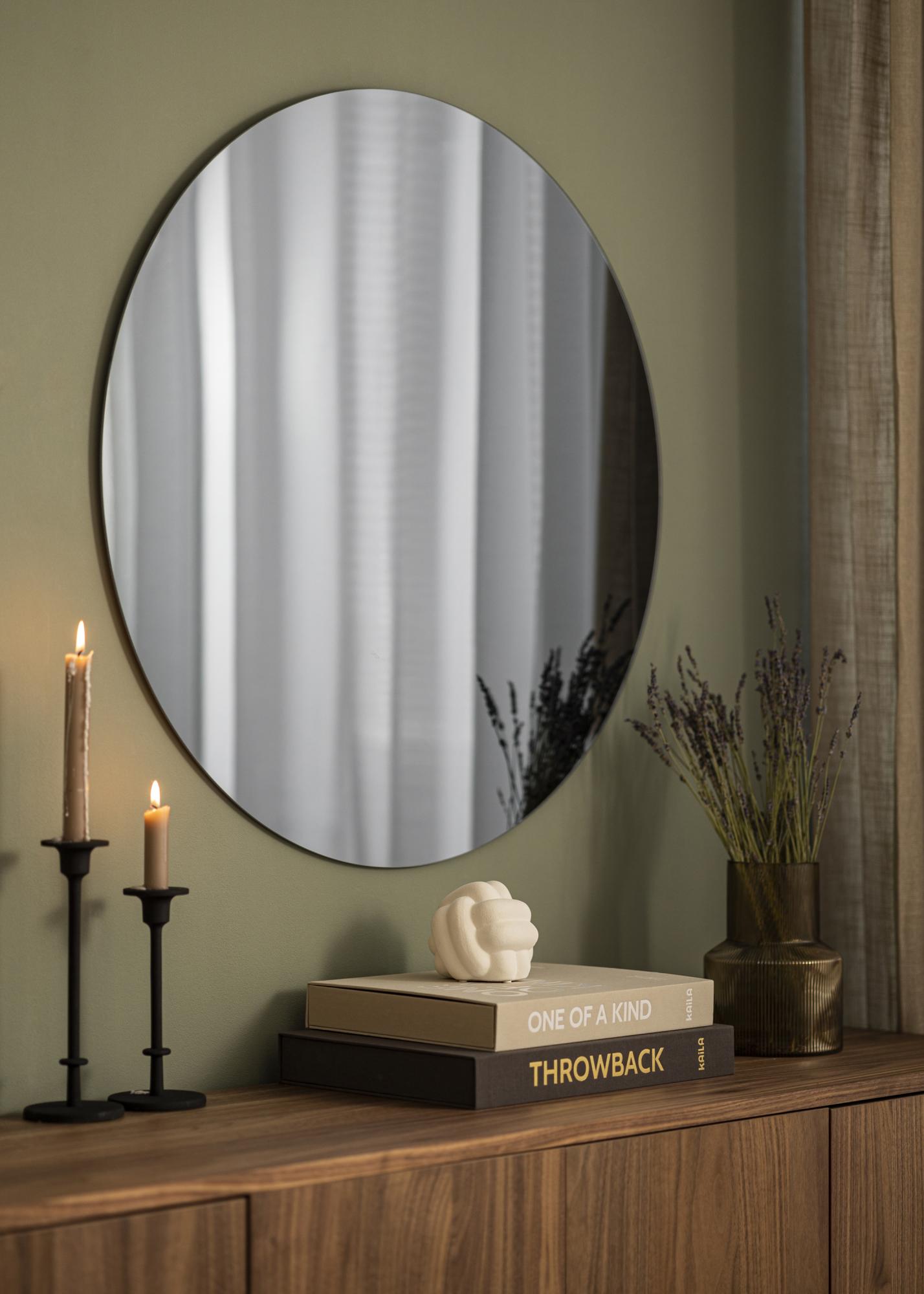 Ένας στρογγυλός καθρέφτης με κομψό γυαλί καθρέφτη σε γκρι απόχρωση που γίνεται μια μοντέρνα λεπτομέρεια διακόσμησης στο σπίτι σας! Αυτός ο καθρέφτης είναι επίσης πολύ λεπτός και έχει έναν μινιμαλιστικό σχεδιασμό χωρίς πλαίσιο, καθιστώντας τον πολύ κομψό και ακόμα πιο μοντέρνο.