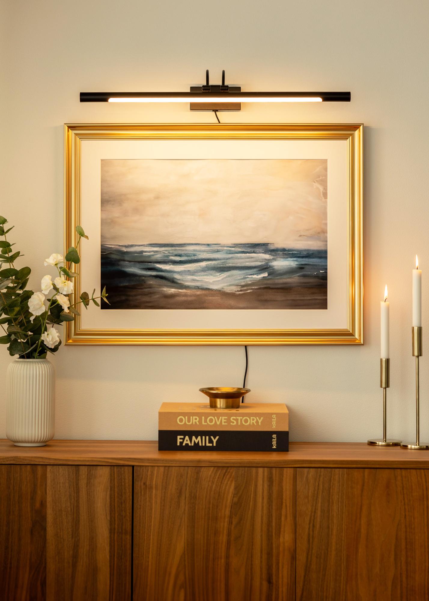 Αυτός ο μαύρος φωτισμός πίνακα συνδυάζει τη μοντέρνα κομψότητα με την πρακτική λειτουργικότητα, καθιστώντας τον ιδανική επιλογή για να αναδείξετε τα έργα τέχνης και τις φωτογραφίες σας. Με βάθος 19 εκ και μήκος 68 εκ, είναι κατάλληλος για να φωτίσει εικόνες με μέγιστο πλάτος 110 εκ. Ο φωτισμός διαθέτει ενσωματωμένη πηγή φωτός LED που παρέχει απαλό και ζεστό φως στους 3000K, αναδεικνύοντας λεπτομέρειες χωρίς να προκαλεί εκτυφλωτική λάμψη. Με φωτεινότητα 780 lumen, προσφέρει ομοιόμορφη διασπορά φωτός που δεν υπερβαίνει, δημιουργώντας μάλλον μια ευχάριστη ατμόσφαιρα γύρω από το έργο τέχνης σας.