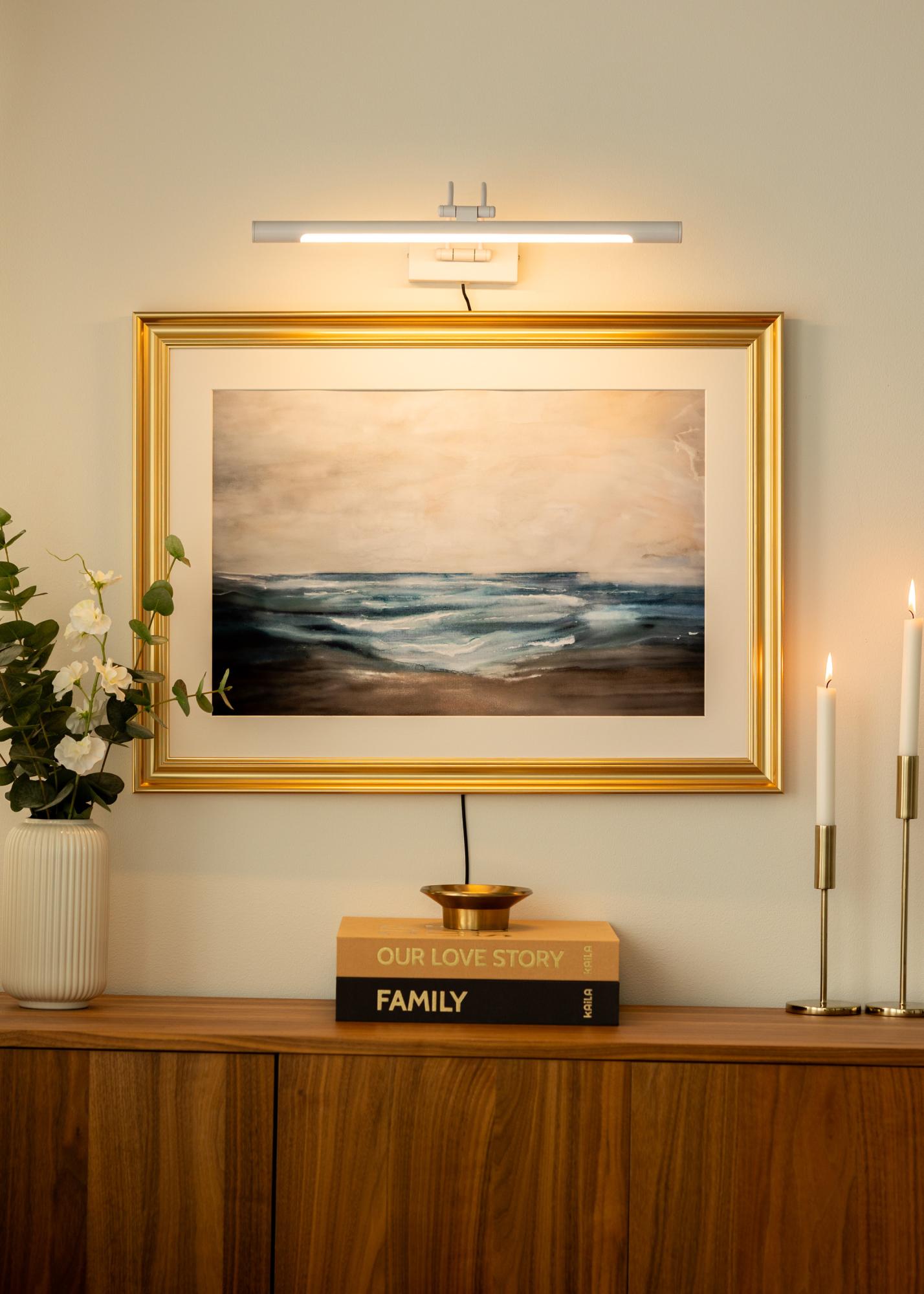 Αυτός ο φωτισμός πίνακα σε λευκό φινίρισμα είναι μια κομψή εναλλακτική λύση για να δώσει στα έργα τέχνης σας ένα ευχάριστο και εστιασμένο φως. Με βάθος 19 cm και μήκος 50 cm, είναι εξαιρετικός για πίνακες με μέγιστο πλάτος έως 90 cm. Η ενσωματωμένη πηγή φωτός LED προσφέρει θερμοκρασία χρώματος 3000K, δημιουργώντας ένα ζεστό και φιλόξενο φως που ενισχύει τις λεπτομέρειες της τέχνης σας χωρίς να κυριαρχεί στον χώρο.