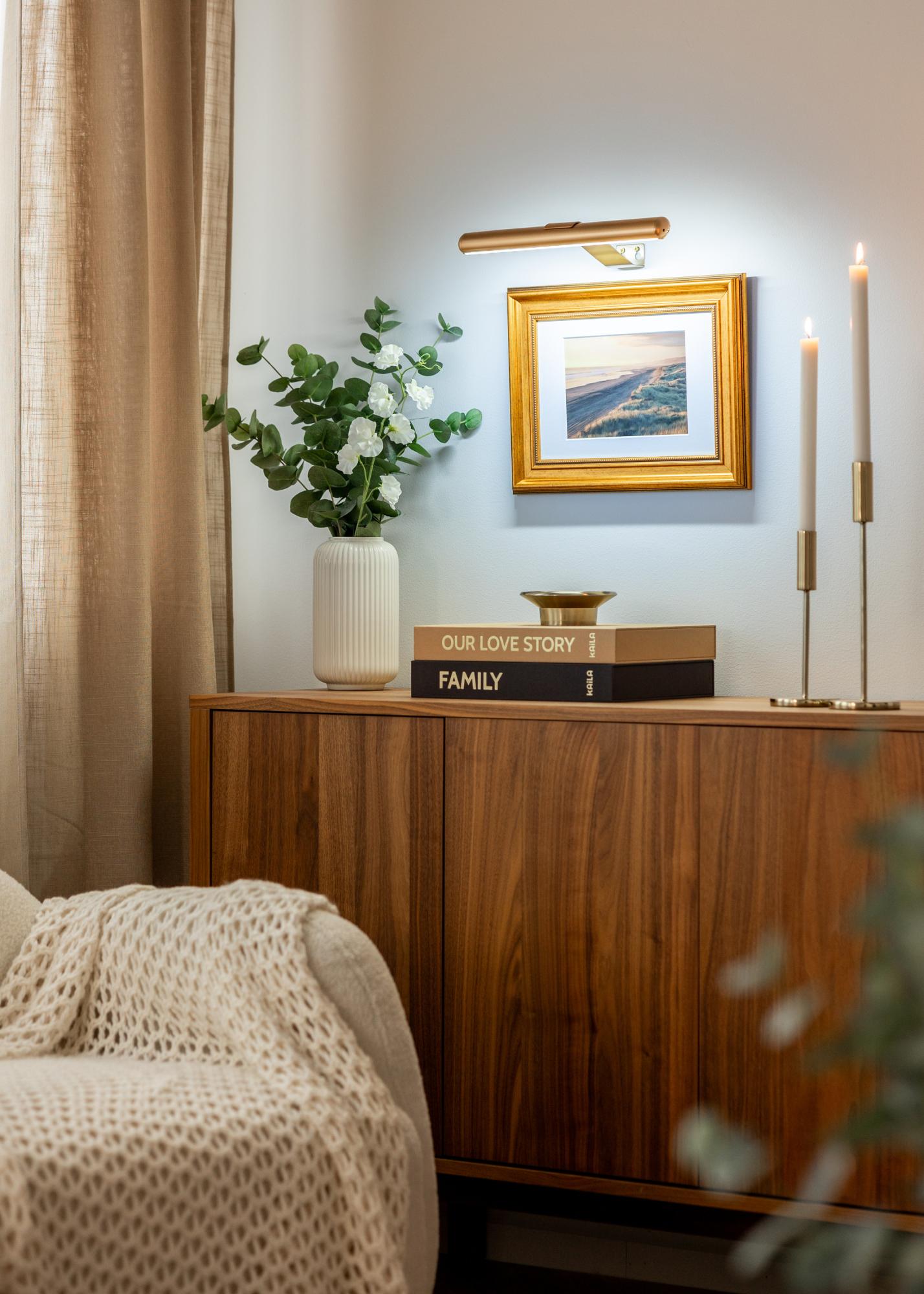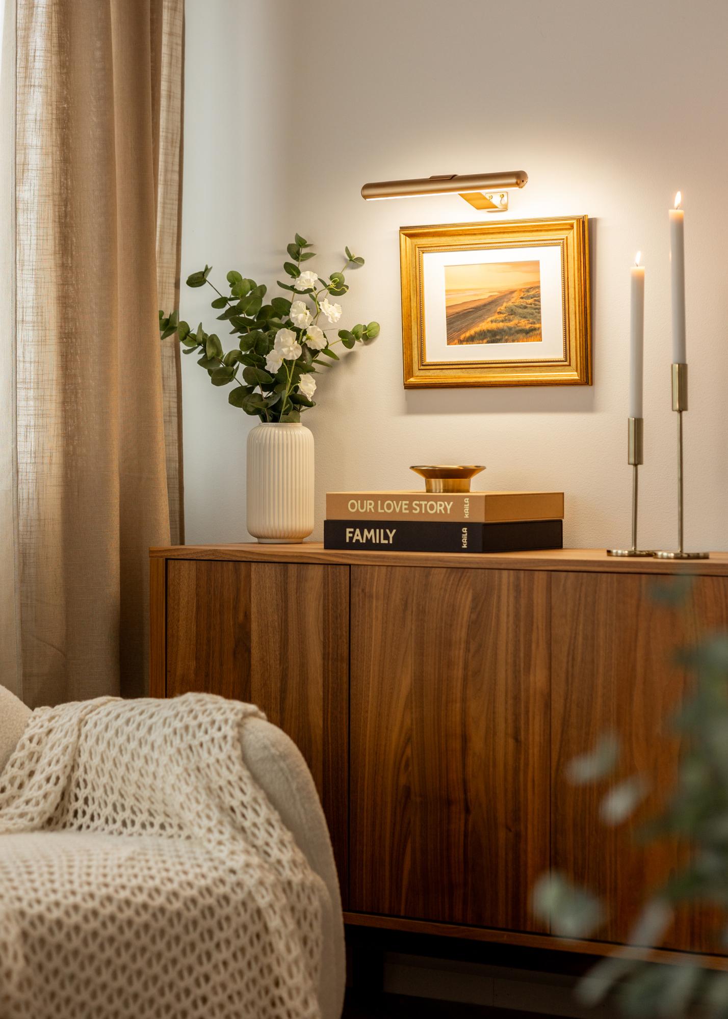 Αυτός ο φωτισμός πίνακα με μπαταρία σε κομψό χρυσό προσφέρει μια στυλάτη και ευέλικτη λύση για να φωτίσετε τα έργα τέχνης σας χωρίς την ανάγκη για ορατά καλώδια. Το μοναδικό χαρακτηριστικό του φωτισμού πίνακα με μπαταρία είναι ότι μπορείτε να τον τοποθετήσετε εύκολα ακριβώς εκεί που χρειάζεται, χωρίς να σκέφτεστε την εγγύτητα σε μια πρίζα. Με μήκος 33 εκ. και βάθος 15 εκ., είναι ιδανικός για να φωτίσει έργα τέχνης με πλάτος έως 60 εκ.