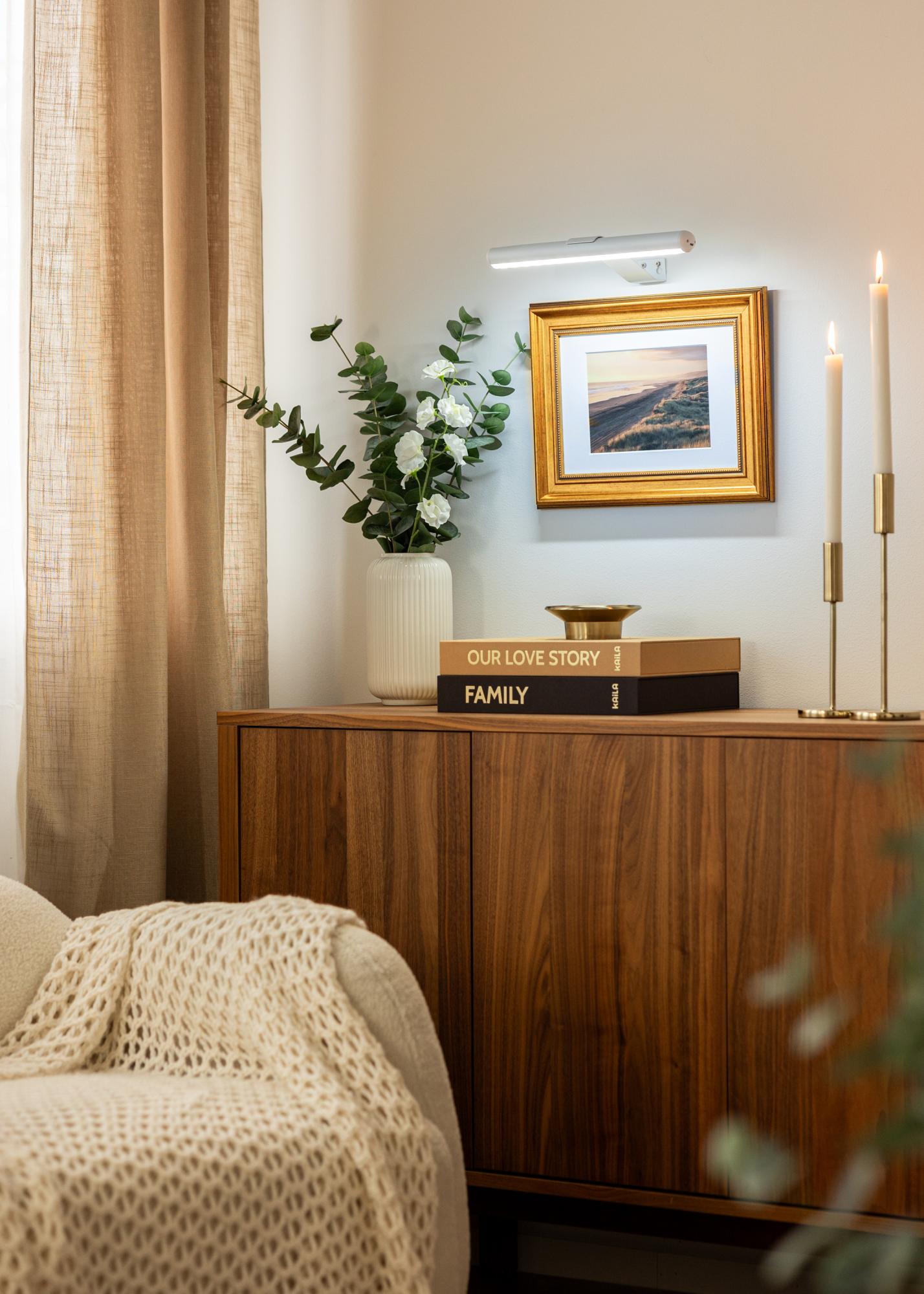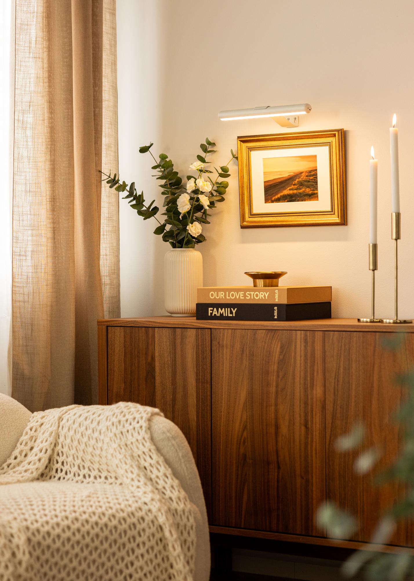 Αυτός ο φωτισμός πινάκων με μπαταρία σε λευκό σχεδιασμό προσφέρει μια ευέλικτη λύση για να φωτίσετε τα έργα τέχνης σας χωρίς να χρειάζεται να τραβάτε καλώδια. Χάρη στο ότι λειτουργεί με μπαταρία, μπορεί να τοποθετηθεί σε οποιοδήποτε σημείο χωρίς να χρειάζεται να σκεφτείτε πρίζες, καθιστώντας τον ιδιαίτερα ευέλικτο. Με βάθος 15 εκ. και μήκος 33 εκ., ο φωτισμός είναι συμπαγής και εύκολος στην εγκατάσταση, ενώ μπορεί να φωτίσει έργα τέχνης με πλάτος έως 60 εκ.