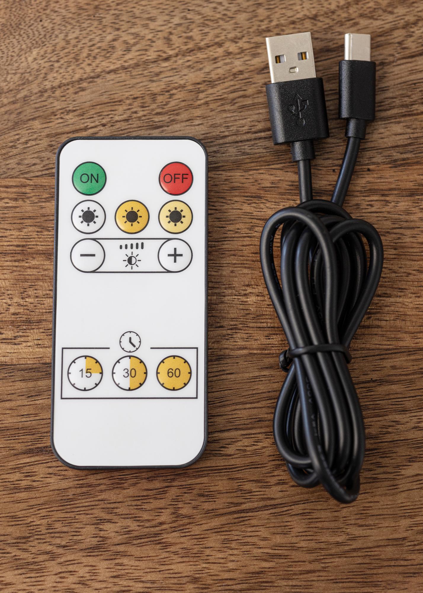 Με τη βοήθεια του παρεχόμενου τηλεχειριστηρίου μπορείτε εύκολα να ρυθμίσετε τη φωτεινότητα, τη χρωματική θερμοκρασία και να ορίσετε χρονοδιακόπτη για 15, 30 ή 60 λεπτά. Αυτό σας επιτρέπει να προσαρμόσετε τον φωτισμό στις ανάγκες σας και να εξοικονομήσετε μπαταρία σβήνοντας αυτόματα το φως μετά από ορισμένο χρόνο.