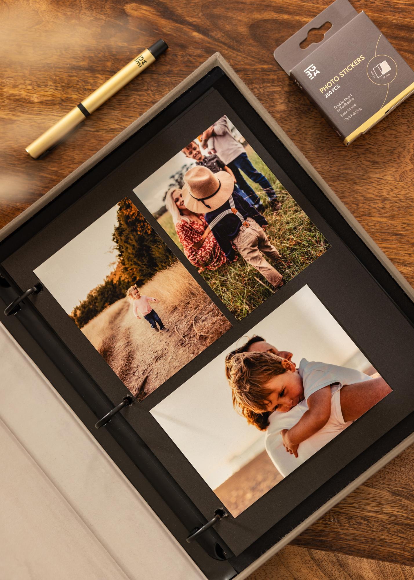 Αυτό είναι το φωτογραφικό άλμπουμ για εσάς που θέλετε να διατηρήσετε τις καλύτερες φωτογραφικές σας αναμνήσεις με στυλ! Το άλμπουμ έχει σχεδιαστεί ως ένα κομψό Coffee Table Book, που μπορεί να τοποθετηθεί ως διακοσμητικό σε τραπέζια και κονσόλες στο σπίτι σας. Στο εσωτερικό του άλμπουμ, θα βρείτε ένα κλασέρ με κρίκους με 60 μαύρες σελίδες (30 φύλλα) που μπορείτε να γεμίσετε με τις ωραιότερες φωτογραφίες σας. Τοποθετείτε τις φωτογραφίες μόνοι σας στο άλμπουμ, γεγονός που σας επιτρέπει να είστε δημιουργικοί και να συνδυάζετε εικόνες σε διαφορετικά σχήματα και μεγέθη.
