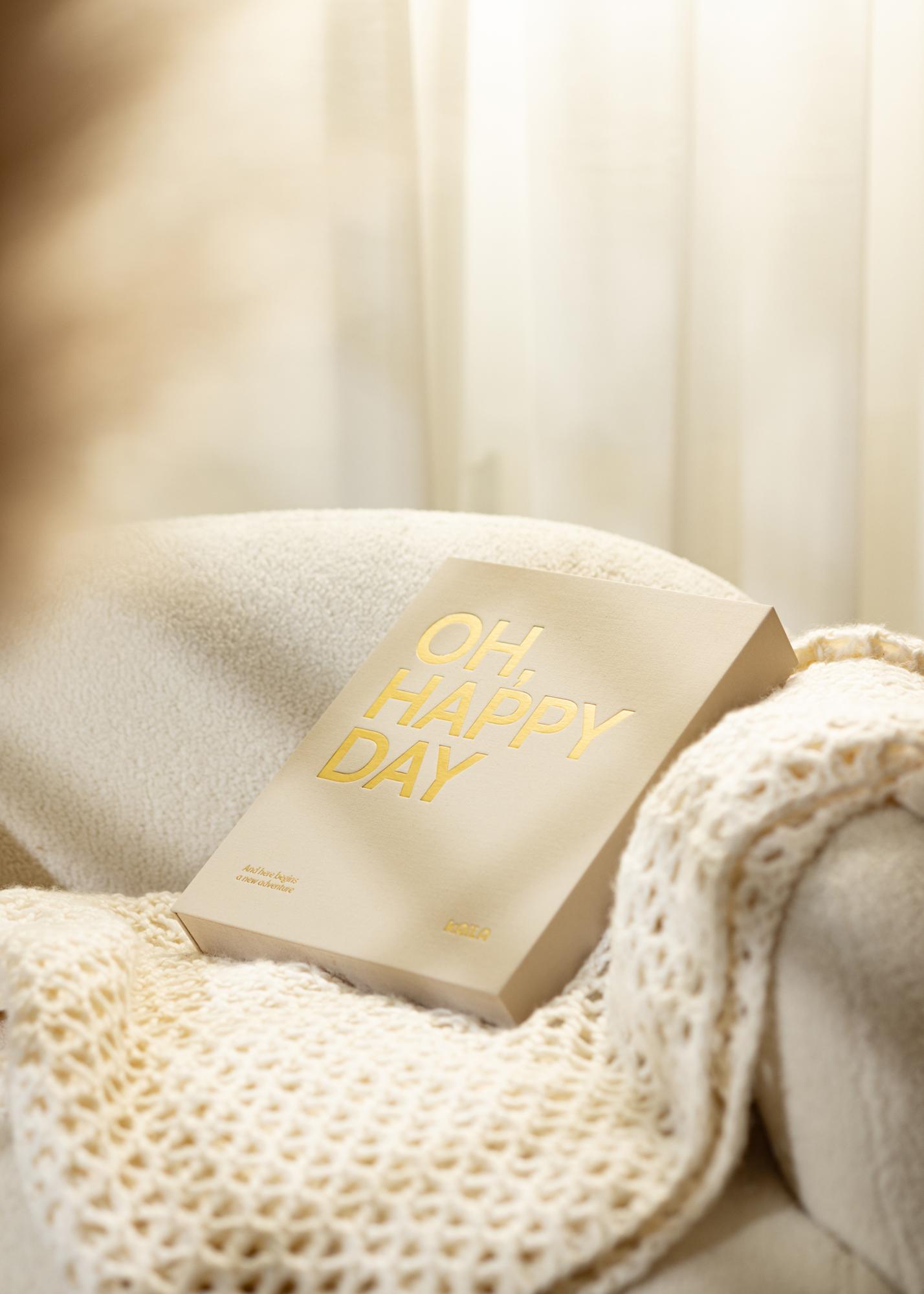 Εδώ είναι ένα τέλειο φωτογραφικό άλμπουμ για τις πιο ευτυχισμένες αναμνήσεις σας από την KAILA! Αποθηκεύστε τις με στυλ σε ένα ελαφρύ ύφασμα Coffee Table Photo Album που ταυτόχρονα γίνεται ένα κομψό στοιχείο διακόσμησης στο σπίτι σας. Αυτό το άλμπουμ έχει τον τίτλο "OH, HAPPY DAY" τυπωμένο στο εξώφυλλο με μεγάλα λευκά γράμματα και τον υπότιτλο "And here begins a new adventure".