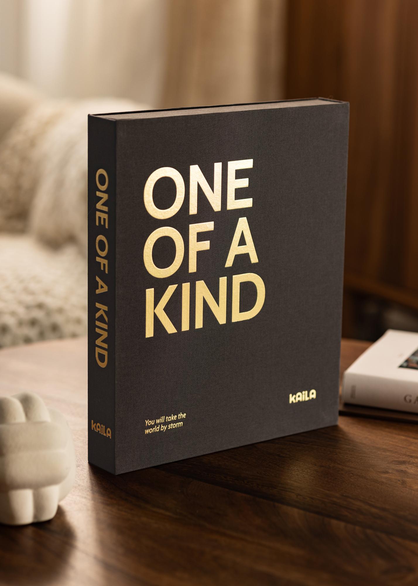 Εμφανίστε τις φωτογραφίες σας και αποθηκεύστε τις σε ένα όμορφο Coffee Table Photo Album! Αυτό το φωτοάλμπουμ από την KAILA είναι επενδεδυμένο με μαύρο ύφασμα και είναι σχεδιασμένο σαν ένα πολυτελές κουτί, το οποίο πραγματικά του δίνει μια αποκλειστική αίσθηση. Το καλύτερο είναι ότι αυτό το φωτοάλμπουμ είναι εξίσου κομψό και ως διακοσμητικό στοιχείο! Στο μπροστινό μέρος του φωτοάλμπουμ έχει τυπωθεί ο τίτλος «ONE OF A KIND» με μεγάλα λευκά γράμματα και η υποτίτλη «You will take the world by storm», γεγονός που καθιστά αυτό το άλμπουμ τέλειο για ωραίες φωτογραφίες από την παιδική ηλικία ή για να το δώσετε ως δώρο σε κάποιον ξεχωριστό, ή φυσικά για τις δικές σας υπέροχες φωτοαναμνήσεις.