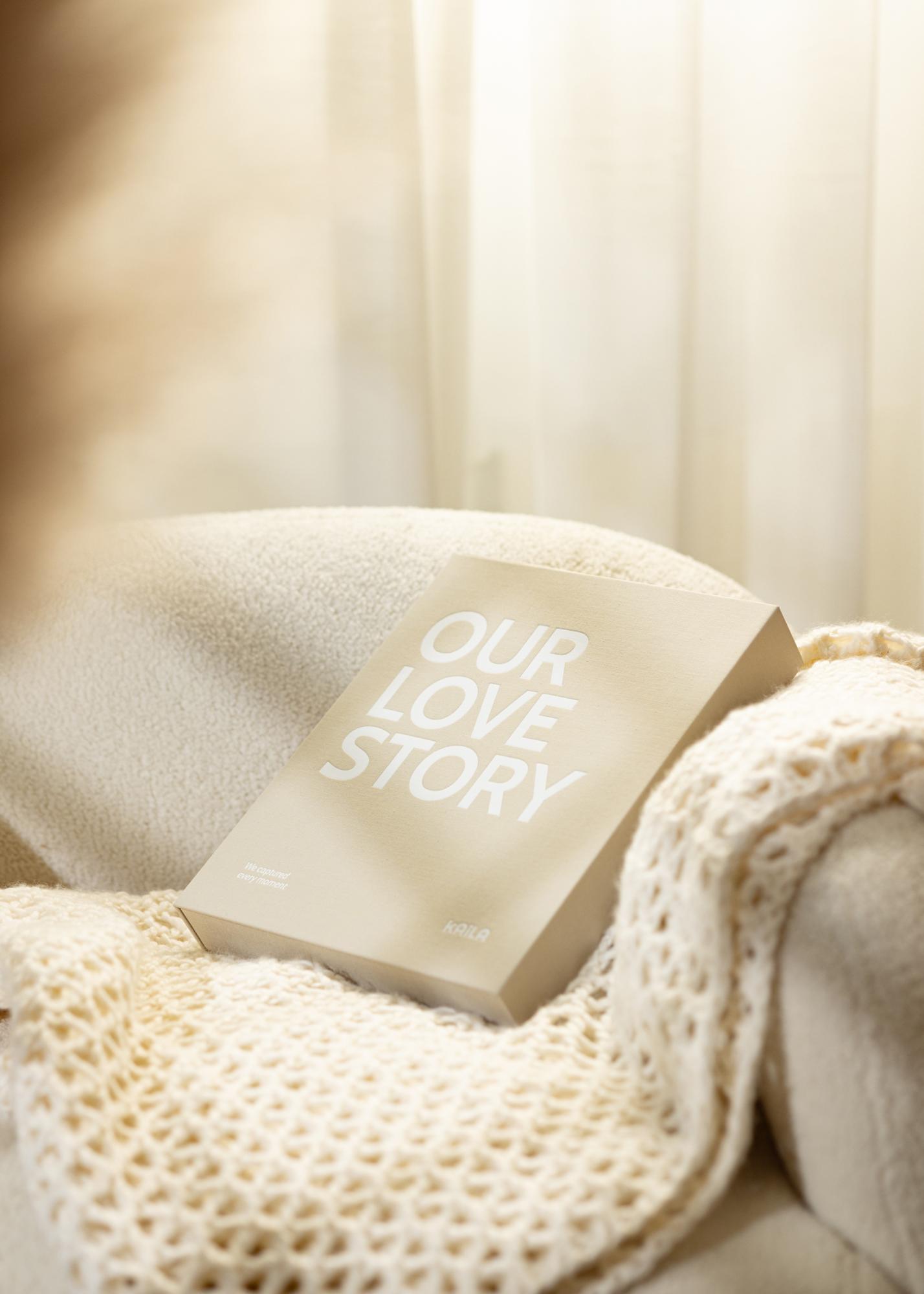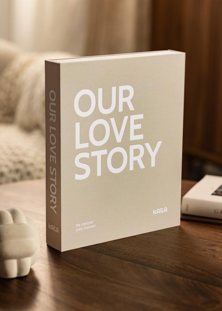 Αυτό είναι ένα άλμπουμ φωτογραφιών και ένα Coffee table book συνδυασμένα σε ένα που ταυτόχρονα γίνεται διακοσμητικό στοιχείο στο σπίτι σας. Το άλμπουμ φωτογραφιών είναι σχεδιασμένο σαν ένα κουτί καλυμμένο με ύφασμα και έχει μια κομψή γκρι απόχρωση. Στην μπροστινή πλευρά του άλμπουμ φωτογραφιών η φράση ”OUR LOVE STORY” είναι τυπωμένη με μεγάλα λευκά γράμματα και η υπότιτλος ”We captured every moment”, γεγονός που καθιστά το άλμπουμ αυτό ιδανικό για να διατηρήσετε όμορφες αναμνήσεις από τις πιο αγαπημένες σας σχέσεις ή να το προσφέρετε ως ωραίο δώρο. Γιατί να μην διατηρήσετε όμορφες φωτογραφίες γάμου σε αυτό το κομψό άλμπουμ φωτογραφιών; Στο εσωτερικό του άλμπουμ φωτογραφιών, θα βρείτε ένα διακριτικό τυπωμένο μοτίβο και έναν δακτυλοειδή σύνδεσμο με 30 (60 σελίδες) μαύρα φύλλα όπου μπορείτε να κολλήσετε οι ίδιοι τις φωτογραφίες σας, δίνοντάς σας την ευκαιρία να είστε δημιουργικοί.