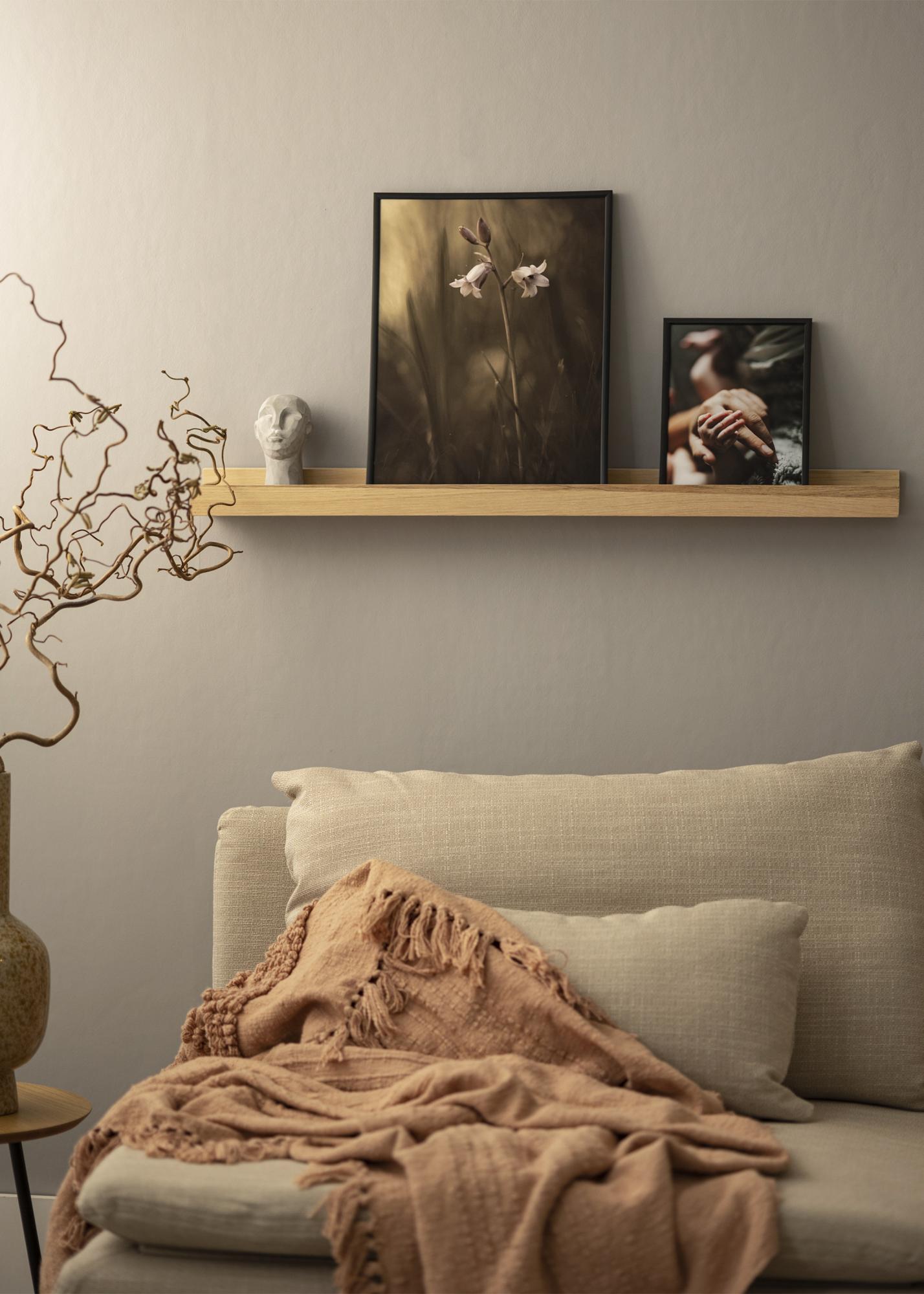 Με ένα πρακτικό ράφι για πίνακες, δείχνετε τους πίνακές σας με κομψό τρόπο και έχετε επίσης εξαιρετικές δυνατότητες να διαφοροποιήσετε την τέχνη στον τοίχο σας. Αυτό το ράφι για πίνακες είναι κατασκευασμένο από στερεή δρυ και έχει σχεδιασμό με απλές, ευθείες γραμμές. Η ίδια η επιφάνεια του ραφιού έχει μια χαραγμένη αυλάκωση που στηρίζει τους πίνακές σας και επιτρέπει να έχουν μια όμορφη γωνία καθώς γέρνουν προς τον τοίχο. Το ράφι για πίνακες διατίθεται σε διάφορες διαφορετικές μήκη, εκ των οποίων αυτή η παραλλαγή έχει μήκος 90 εκατοστά. Το ράφι για πίνακες έχει επίσης προτρυπημένες τρύπες και για να διευκολυνθεί η τοποθέτηση περιλαμβάνονται επίσης κατάλληλες βίδες και βύσματα.