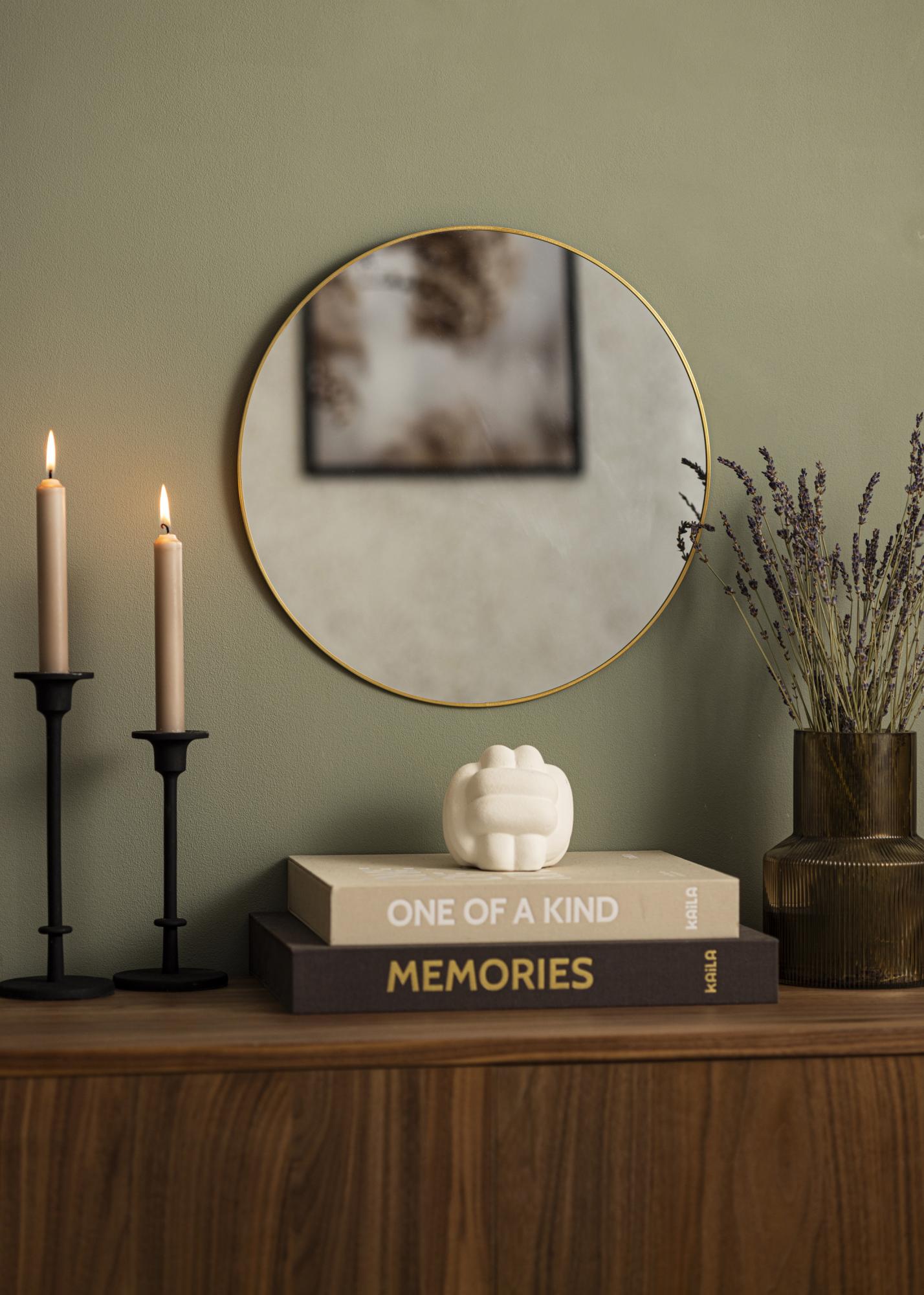 KAILA Thin Brass είναι ένας στρογγυλός καθρέφτης τοίχου με λεπτό πλαίσιο από μέταλλο σε χρώμα ορείχαλκου. Αυτός ο καθρέφτης είναι κάτι παραπάνω από λειτουργικός – είναι ένα όμορφο στοιχείο διακόσμησης επίσης. Τοποθετήστε τον στον τοίχο σε οποιοδήποτε δωμάτιο για να του δώσετε μια πολυτελή και φιλόξενη αίσθηση. Ο καθρέφτης διαθέτει στηρίγματα τοίχου. Ο καθρέφτης ταιριάζει εξίσου καλά μόνος του στον τοίχο όπως και μαζί με άλλες διακοσμήσεις τοίχου για μια κομψή συνολική εμφάνιση.