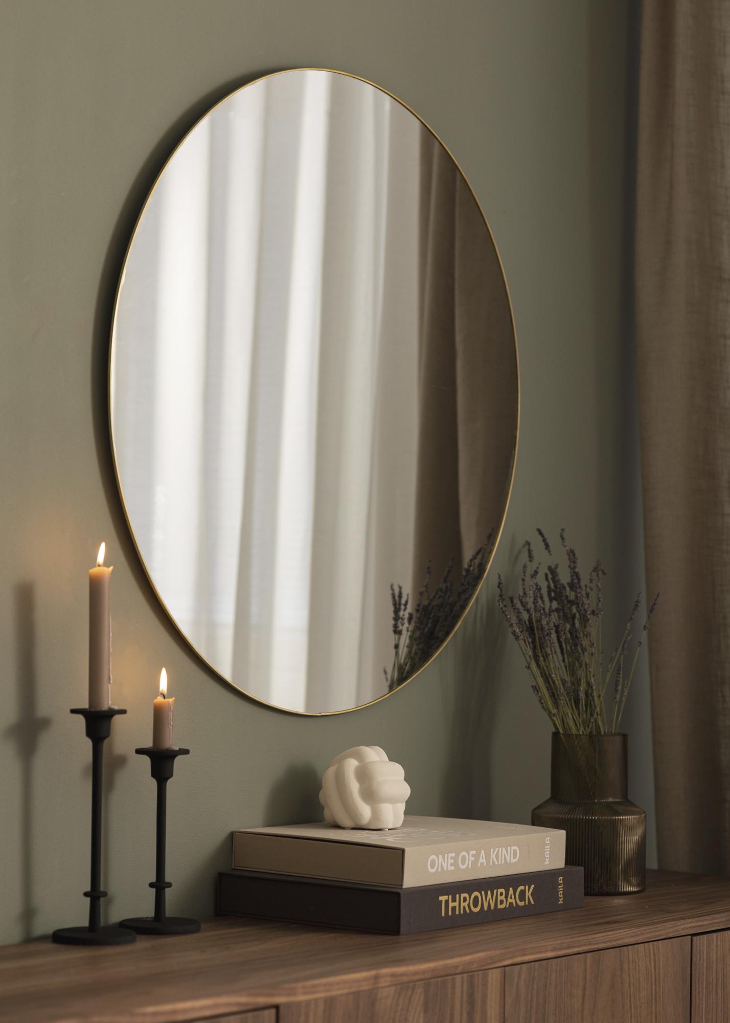 Αυτός ο στρογγυλός καθρέφτης προέρχεται από τη σουηδική μάρκα KAILA και είναι διαθέσιμος σε πολλές διαστάσεις, εκ των οποίων αυτή η παραλλαγή έχει διάμετρο 80 εκ.