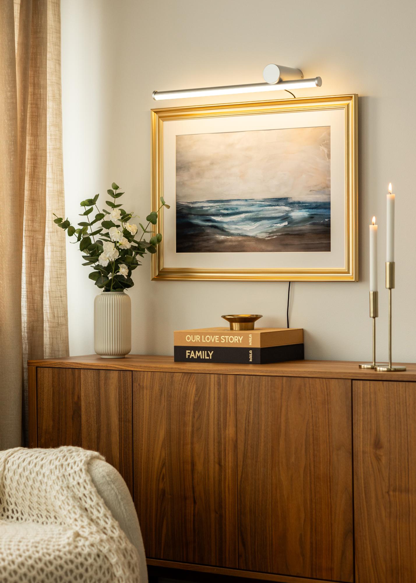 Ο φωτισμός είναι εξοπλισμένος με πηγή LED που προσφέρει ζεστό λευκό φως στους 3000K. Αυτό το φως είναι ευχάριστο και δημιουργεί μια απαλή και φιλόξενη ατμόσφαιρα στο δωμάτιο χωρίς να είναι πολύ έντονο. Η φωτεινότητα είναι 780 lumen, που παρέχει αρκετό φως για να αναδείξει τις λεπτομέρειες της τέχνης σας χωρίς να είναι υπερβολικό. Το φως διαχέεται ομοιόμορφα και επιτρέπει σε κάθε μέρος του πίνακα να φαίνεται ξεκάθαρα.
