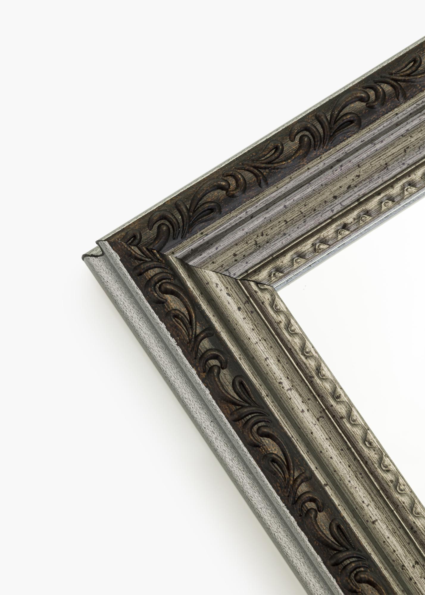 Αυτός είναι ένας επιτοίχιος καθρέφτης σε κομψή ασημένια απόχρωση που υπογραμμίζεται από ένα μαύρο περίγραμμα. Η κομψή απόχρωση του καθρέφτη συνδυάζεται τέλεια με το διακοσμημένο προφίλ, το μοτίβο του οποίου βοηθά στη δημιουργία μιας πολύ εκλεπτυσμένης συνολικής εικόνας. Το πλαίσιο έχει πλάτος 25 mm και είναι κατασκευασμένο από σύνθετο υλικό.
