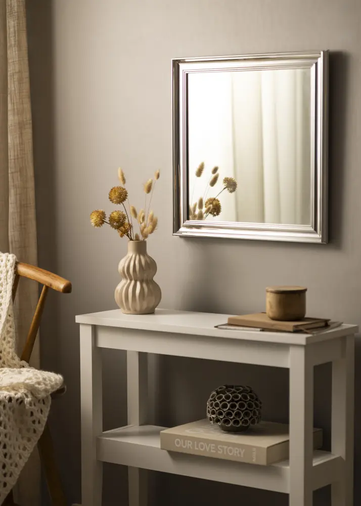 Alice Silver είναι ένας καθρέπτης του οποίου το πλαίσιο έχει ένα κλασικό, αυστηρό σχέδιο με ίσιες γραμμές που δημιουργήθηκαν για να εστιάζουν στο θέμα.