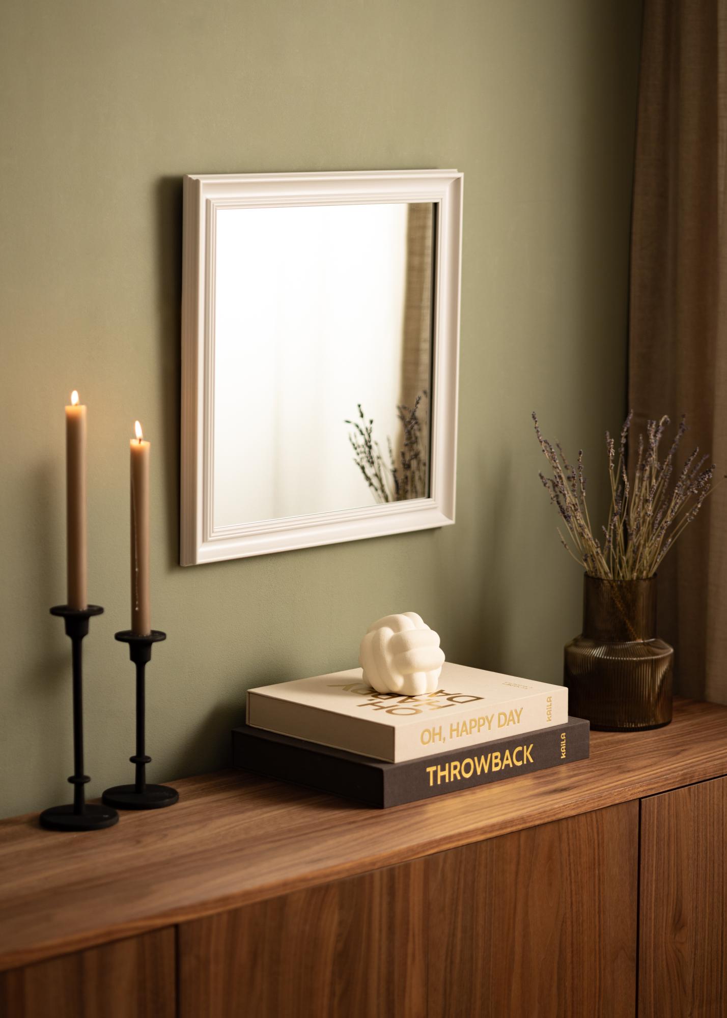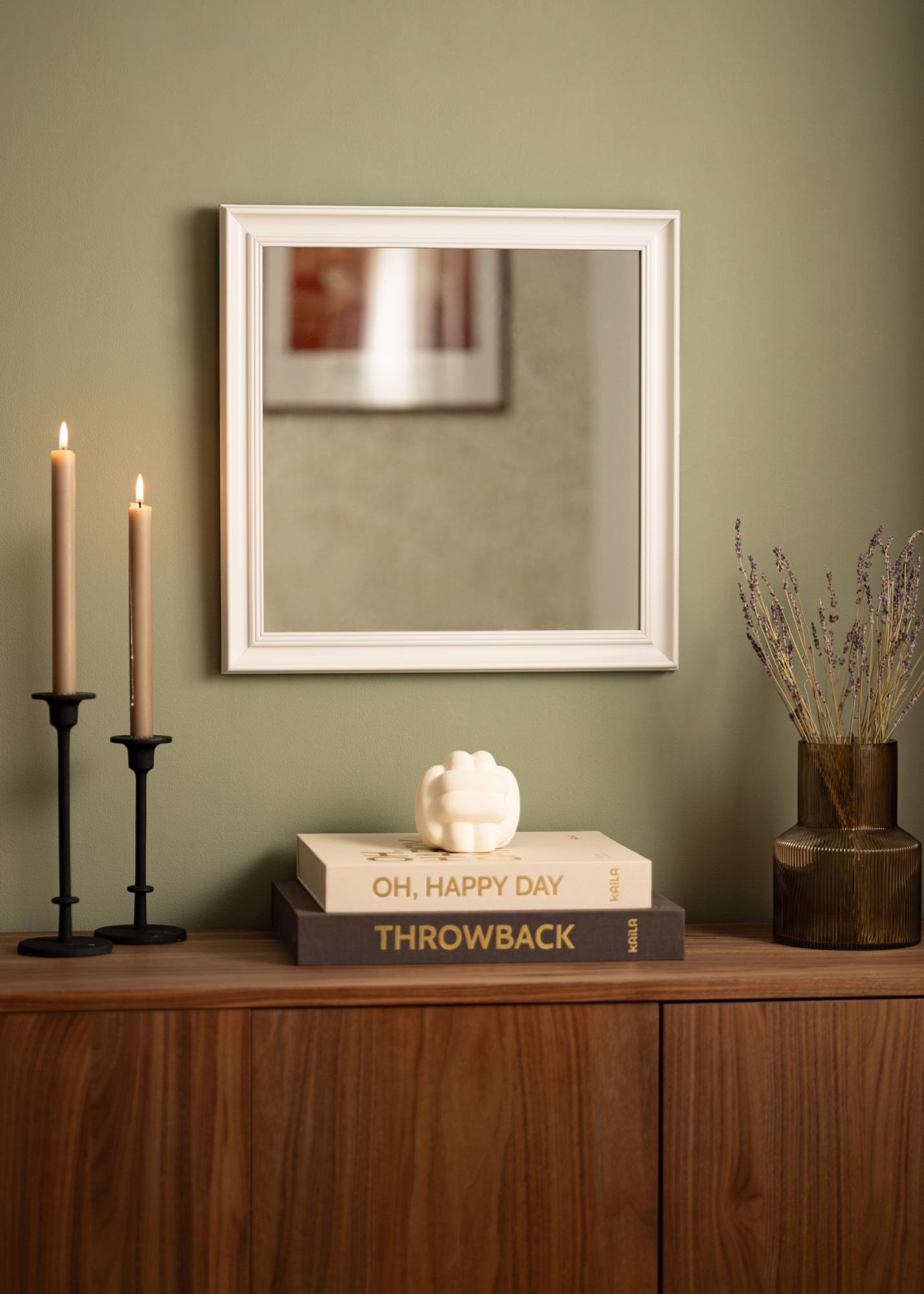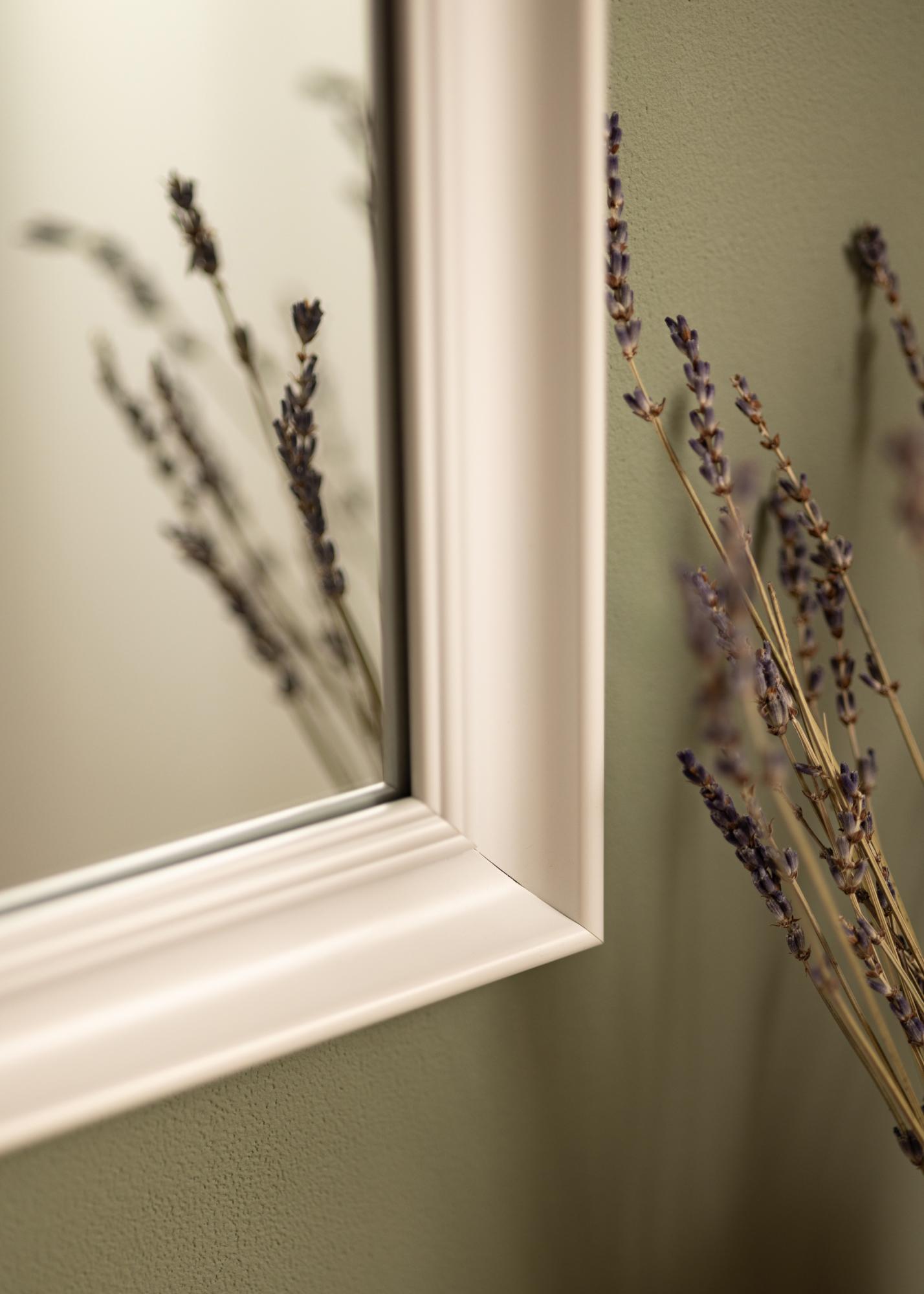 Η Alice Λευκή είναι ένας καθρέφτης με πλαίσιο που έχει κλασικό αυστηρό σχεδιασμό με ευθείες γραμμές που έχουν δημιουργηθεί για να δώσουν έμφαση στο κεντρικό θέμα.