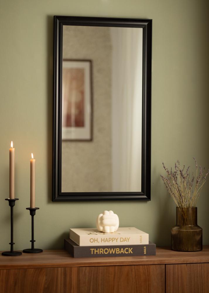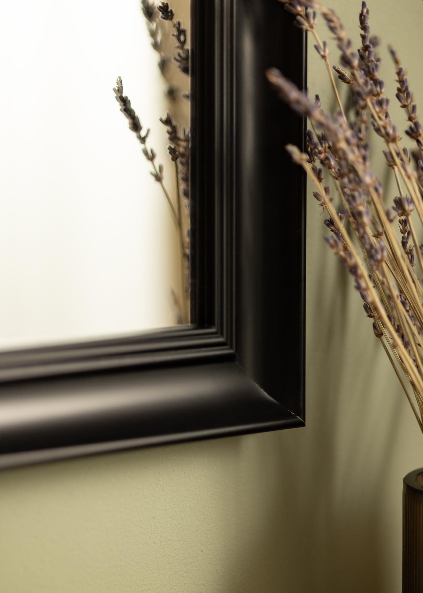 Η Alice Μαύρη είναι ένας καθρέφτης του οποίου το πλαίσιο έχει κλασικό αυστηρό σχεδιασμό με ευθείες γραμμές που έχουν σχεδιαστεί για να εστιάζουν στο θέμα.
