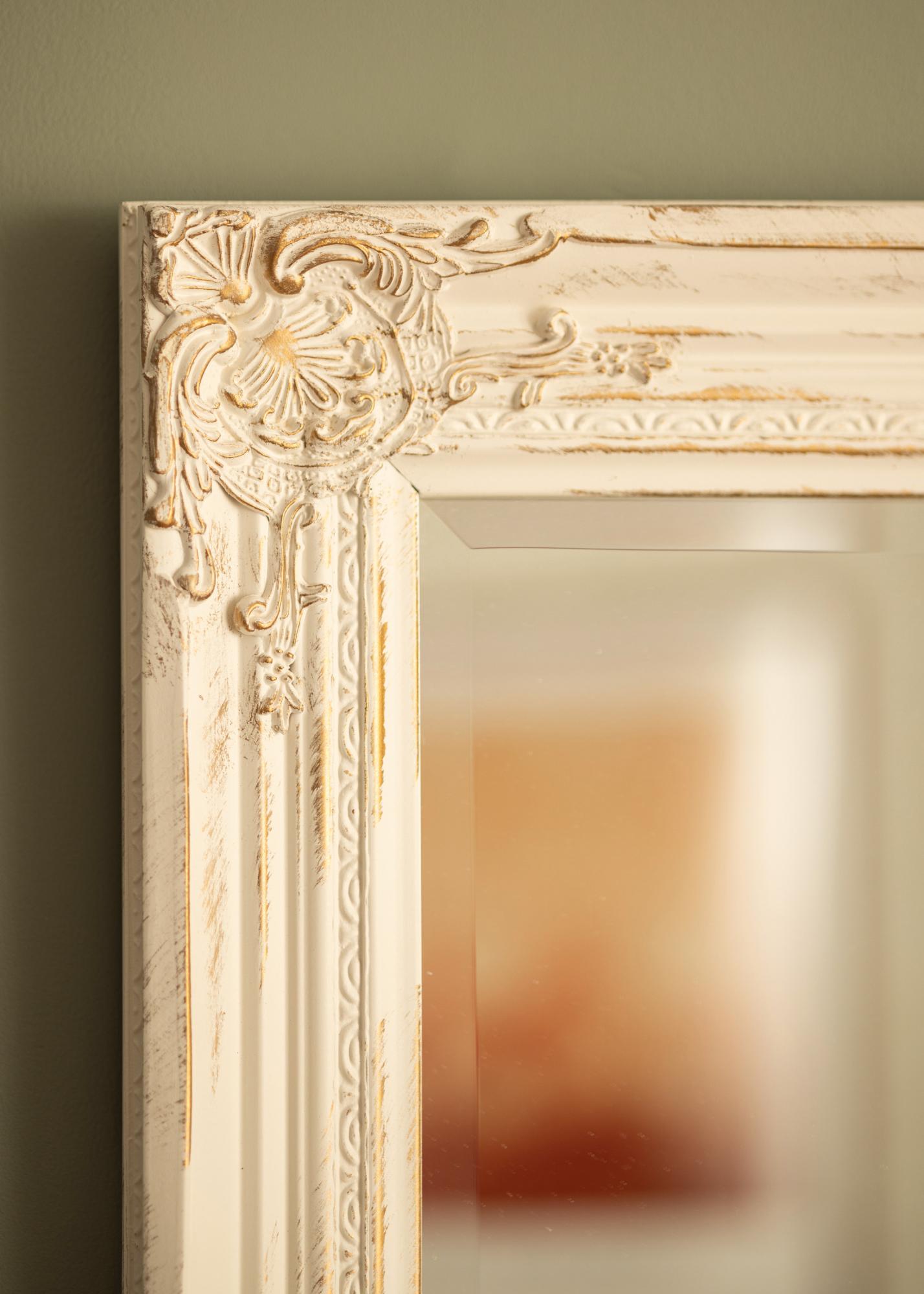 Ο καθρέφτης Antique Vit είναι ένας επιτοίχιος καθρέφτης με παραδοσιακή μορφή και σχήμα. Διαθέτει ξύλινο πλαίσιο με όμορφη κλασικά σχεδιασμένη διακόσμηση που έχει χυθεί από γύψο και στη συνέχεια εφαρμοστεί στο πλαίσιο. Αυτό το πλαίσιο καθιστά τον καθρέφτη ένα όμορφο διακοσμητικό στοιχείο που θα τραβήξει τα βλέμματα.