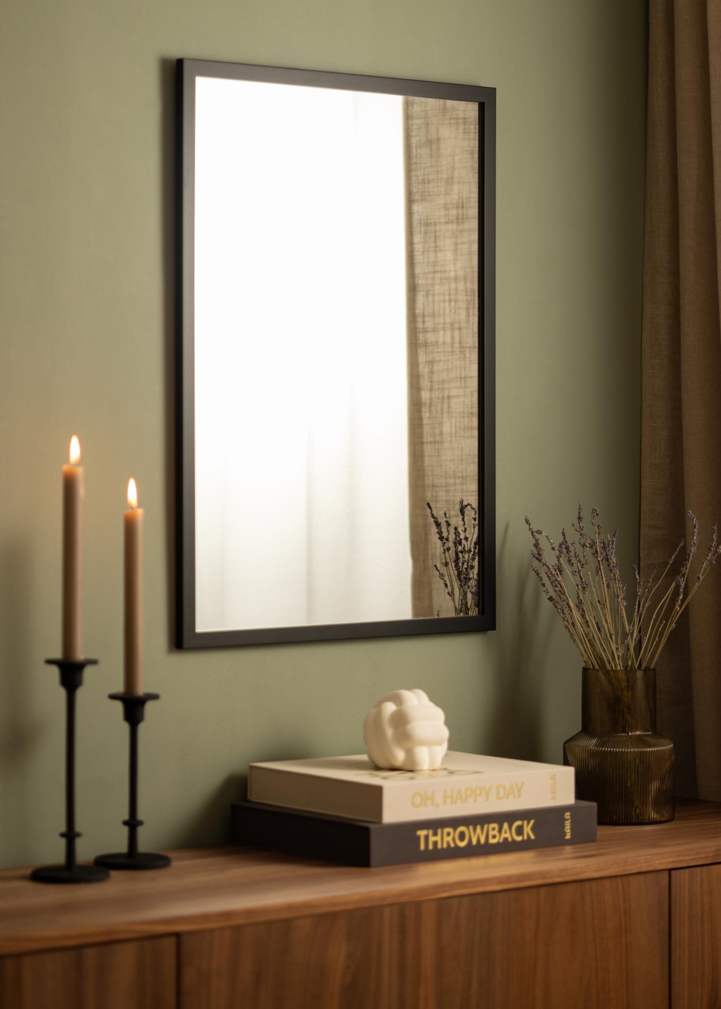 Το Black Wood είναι μια εξαιρετική επιλογή για εσάς που αναζητάτε έναν κομψό καθρέφτη τοίχου με απλή μαύρη κορνίζα. Ο καθρέφτης είναι κατασκευασμένος από βαμμένο ξύλο αιώσιου και εξοπλισμένος με άχρωμο γυαλί καθρέφτη. Η 22 mm ευρεία κορνίζα έχει ένα παραδοσιακό τετράγωνο προφίλ που αφήνει την επιφάνεια του καθρέφτη να είναι το επίκεντρο.