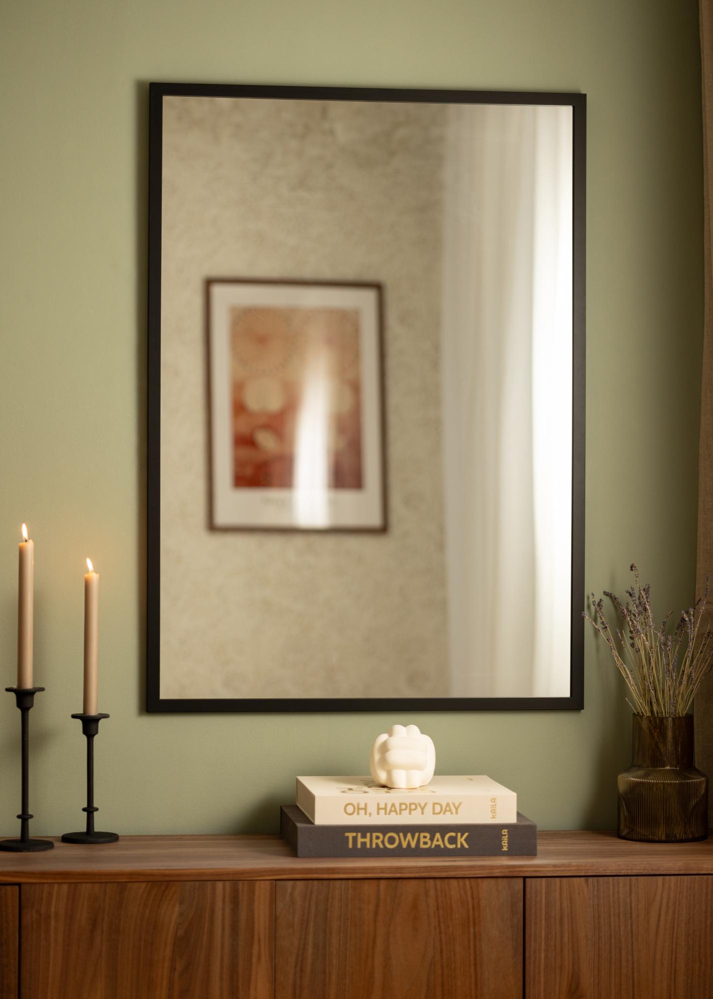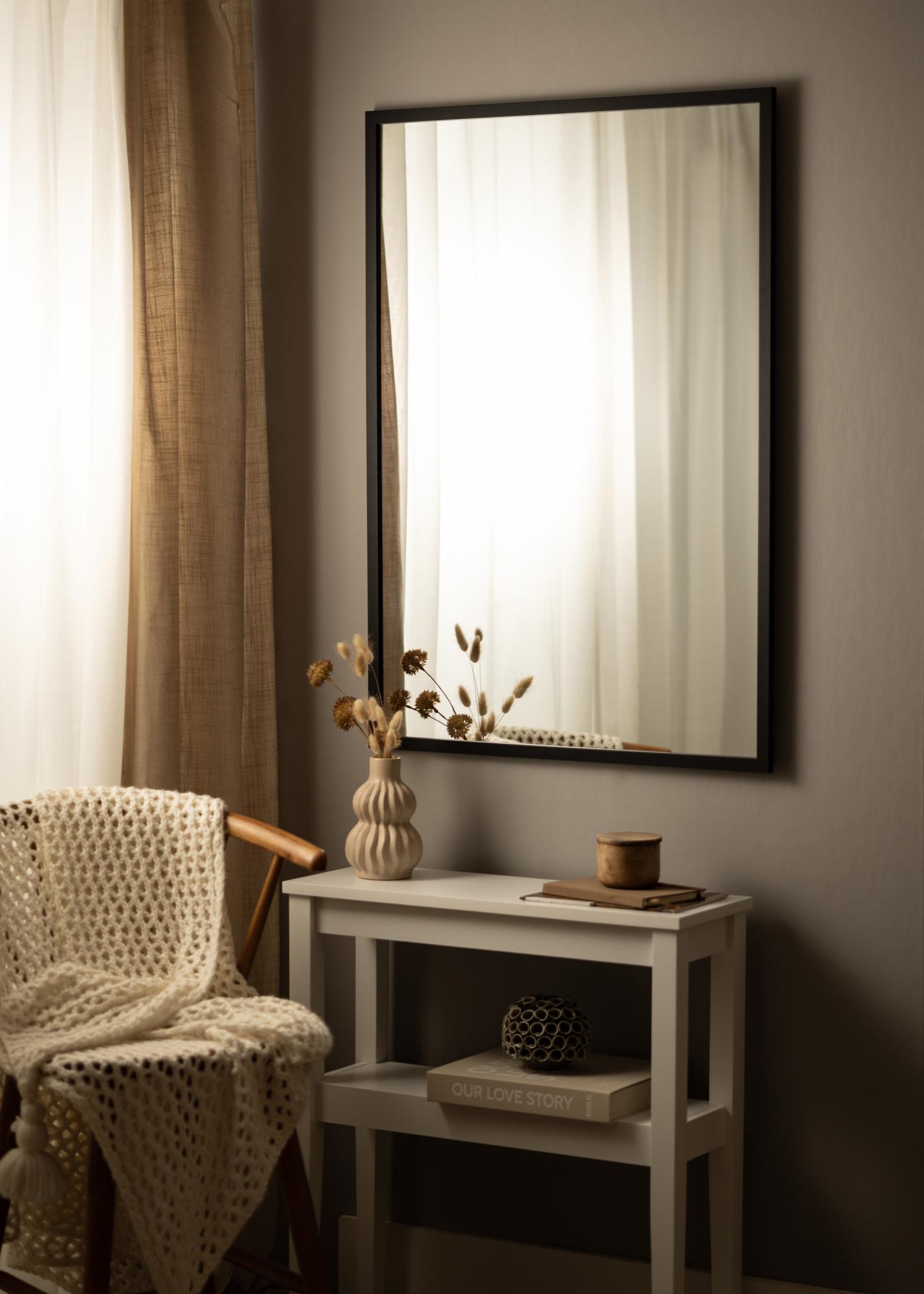 Black Wood είναι μια εξαιρετική επιλογή για εσάς που αναζητάτε έναν κομψό καθρέφτη τοίχου με ένα απλό μαύρο πλαίσιο. Ο καθρέφτης είναι κατασκευασμένος από βαμμένο ξύλο άγυος και διαθέτει άχρωμο γυαλί καθρέφτη. Το πλαίσιο, πλάτους 22 mm, έχει παραδοσιακό τετράγωνο προφίλ που επιτρέπει στην επιφάνεια του καθρέφτη να παραμένει στο επίκεντρο.