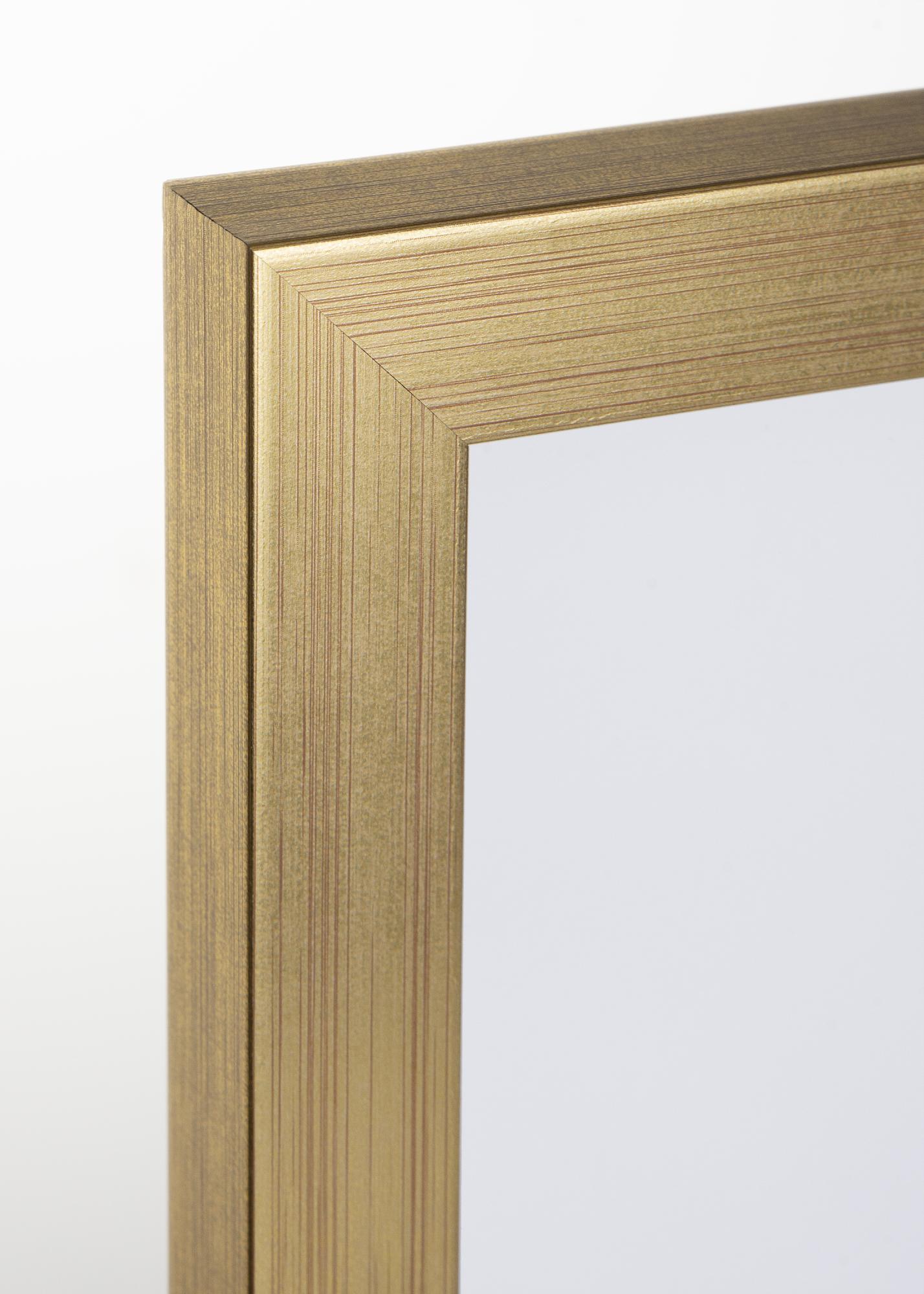 Η χρυσαφένια κορνίζα δίνει στον καθρέφτη μια κομψή και πολυτελή αίσθηση που ταιριάζει στους περισσότερους στυλ διακόσμησης. Η κορνίζα έχει πλάτος 20 χιλιοστά και βάθος 20 χιλιοστά, παρέχοντας στον καθρέφτη μια σταθερή και ανθεκτική κατασκευή. Κατασκευασμένος από πεύκο που είναι επενδυμένο, ο καθρέφτης συνδυάζει την ανθεκτικότητα με τον κομψό σχεδιασμό.