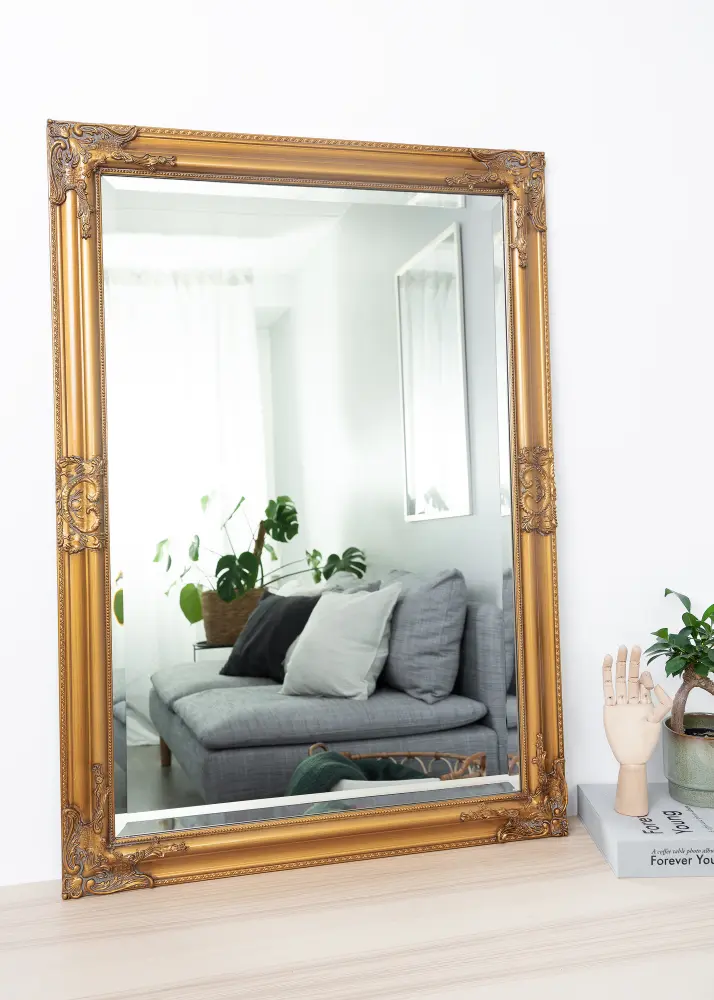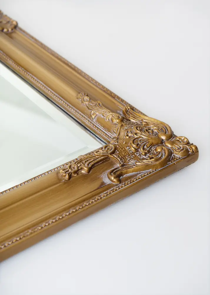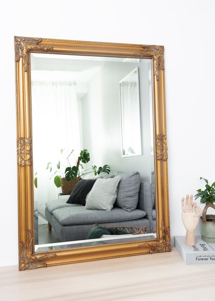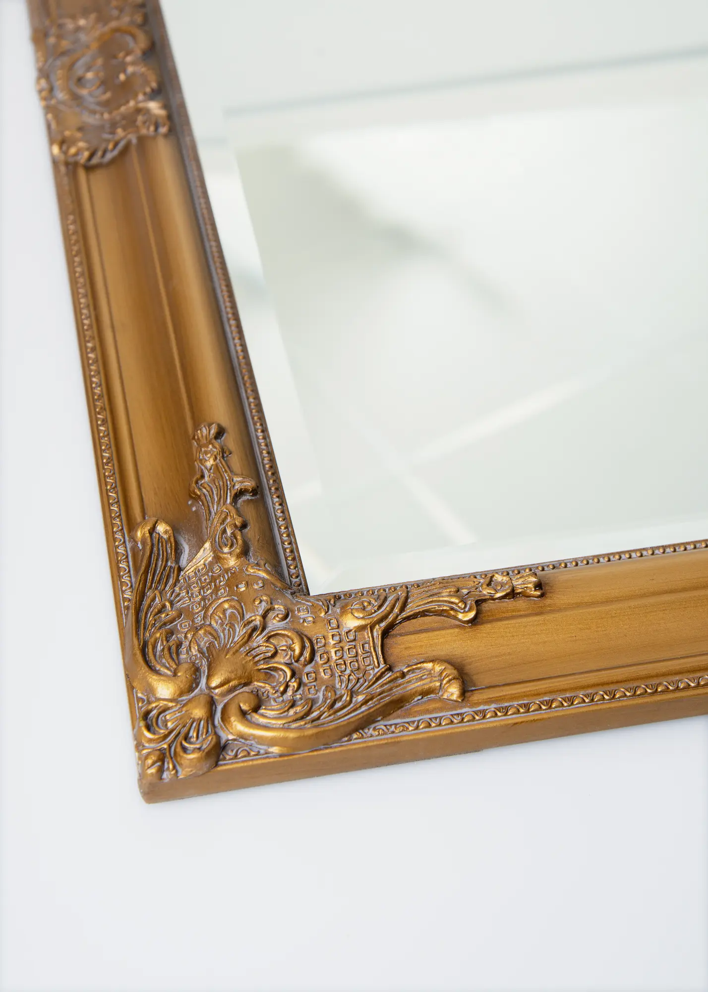 Η σειρά καθρεφτών Bologna Χρυσό έχει λατινικό σχεδιασμό με πλούσια διακόσμηση στις γωνίες και στα κεντρικά σημεία των πλευρών της κορνίζας. Λίγο στενότερη κορνίζα από πολλούς άλλους καθρέφτες σε αυτό το στυλ. Η κορνίζα είναι κατασκευασμένη από ξύλο, και η διακόσμηση έχει χυτευθεί σε γύψο πριν εφαρμοστεί στην κορνίζα. Ιδανική επιλογή για καθρέφτη μπάνιου.