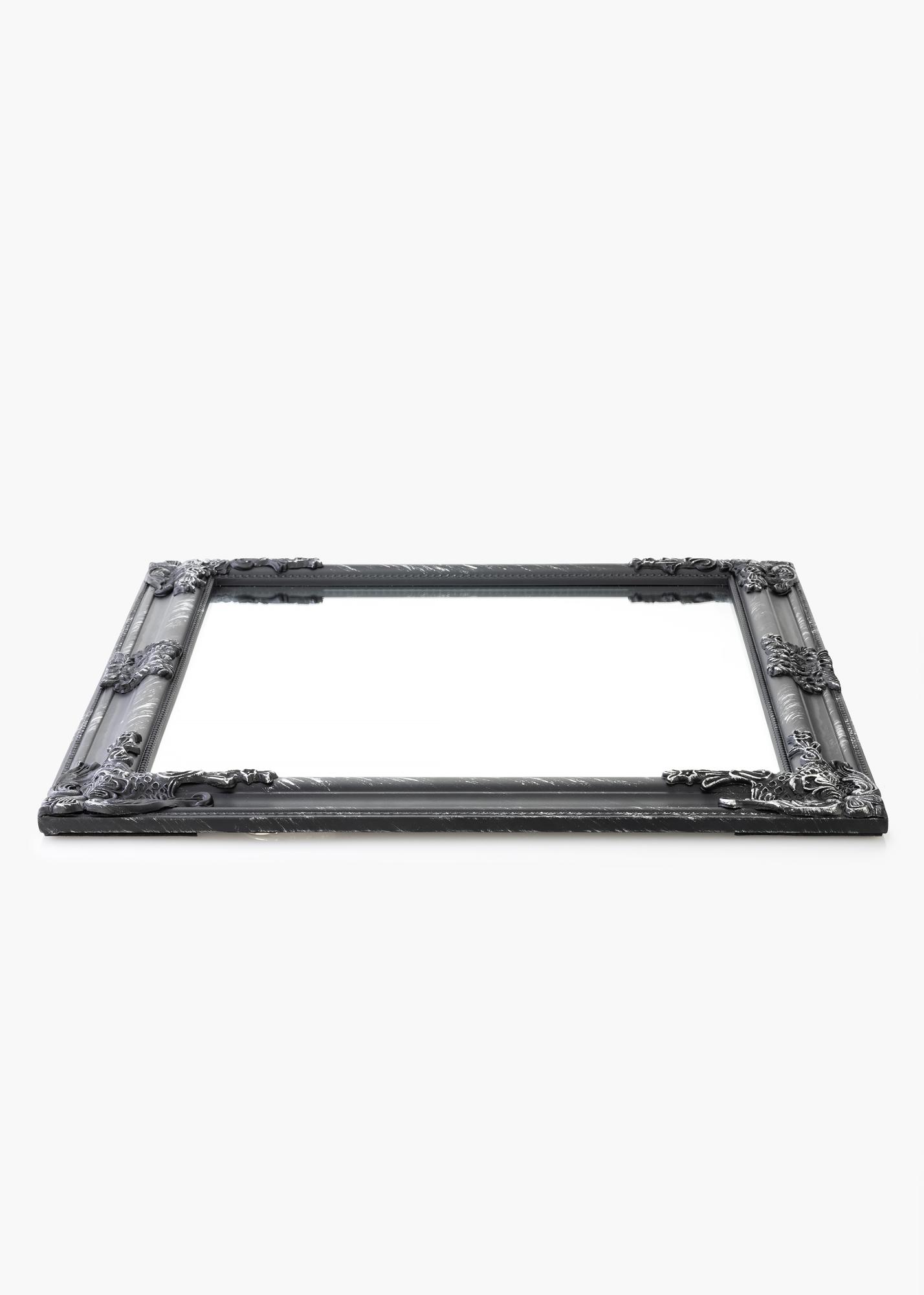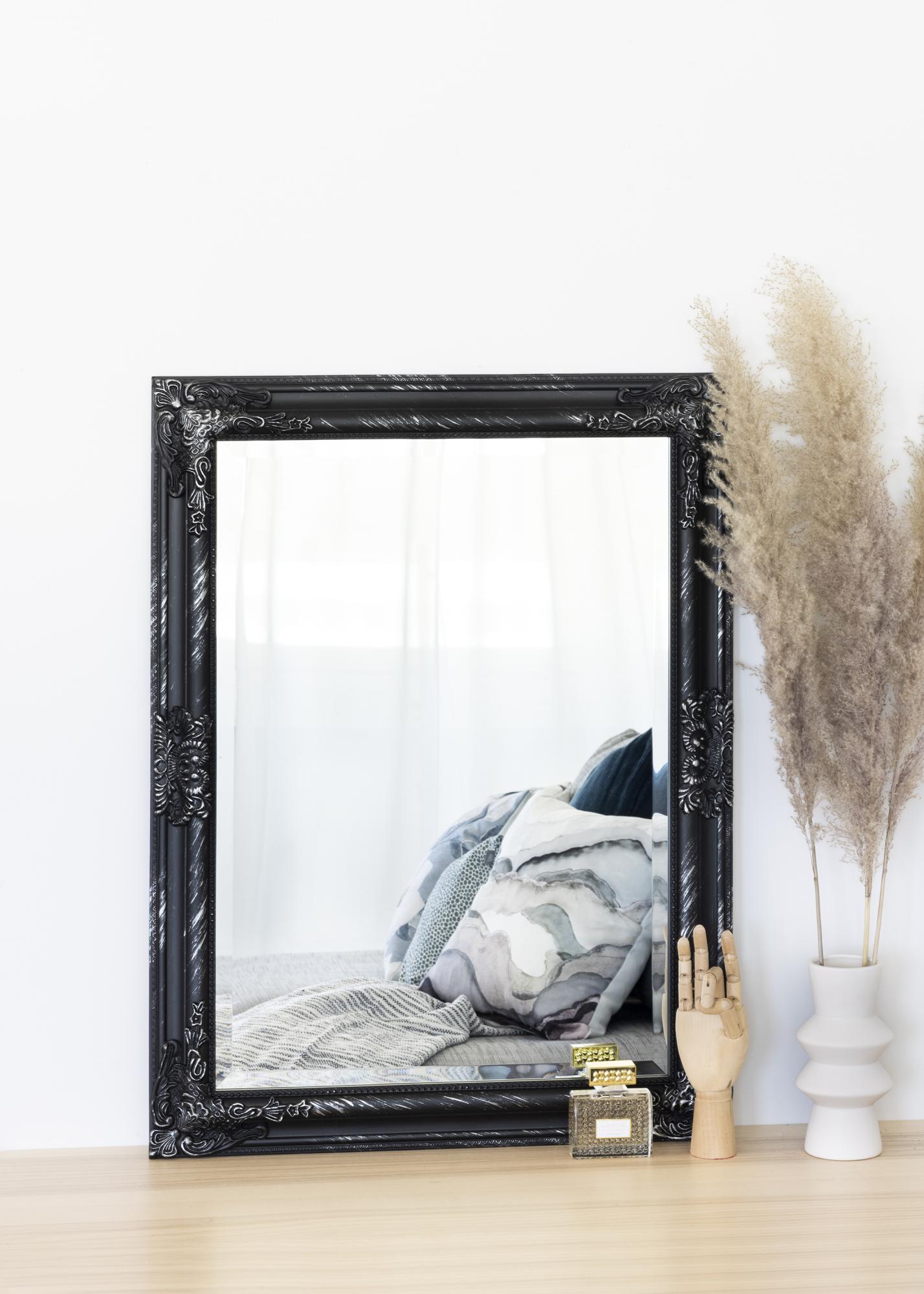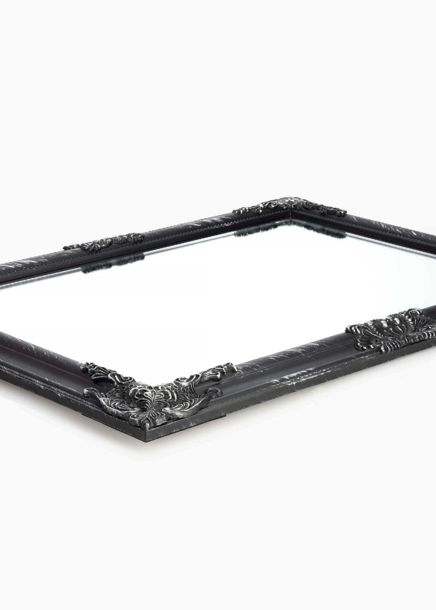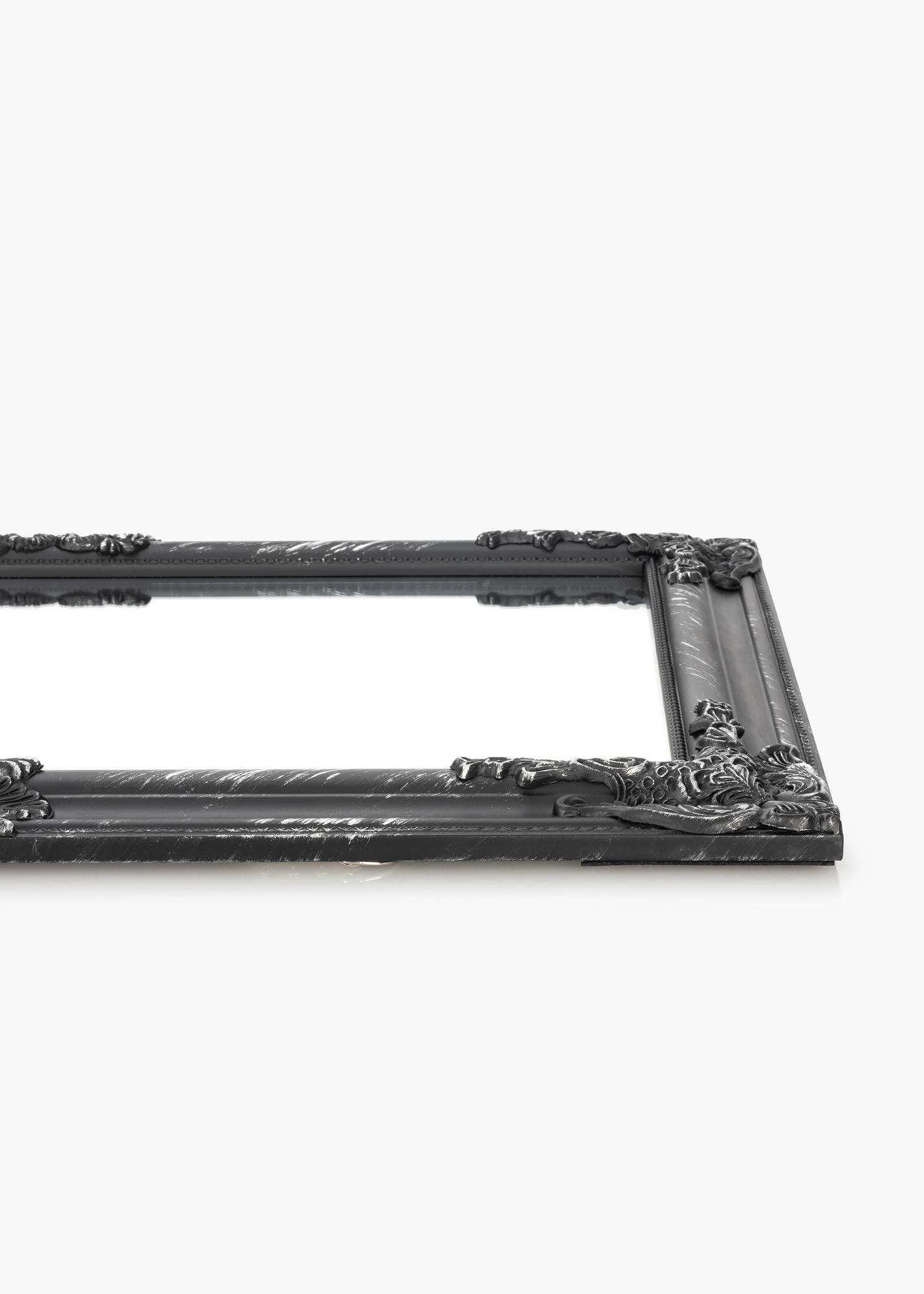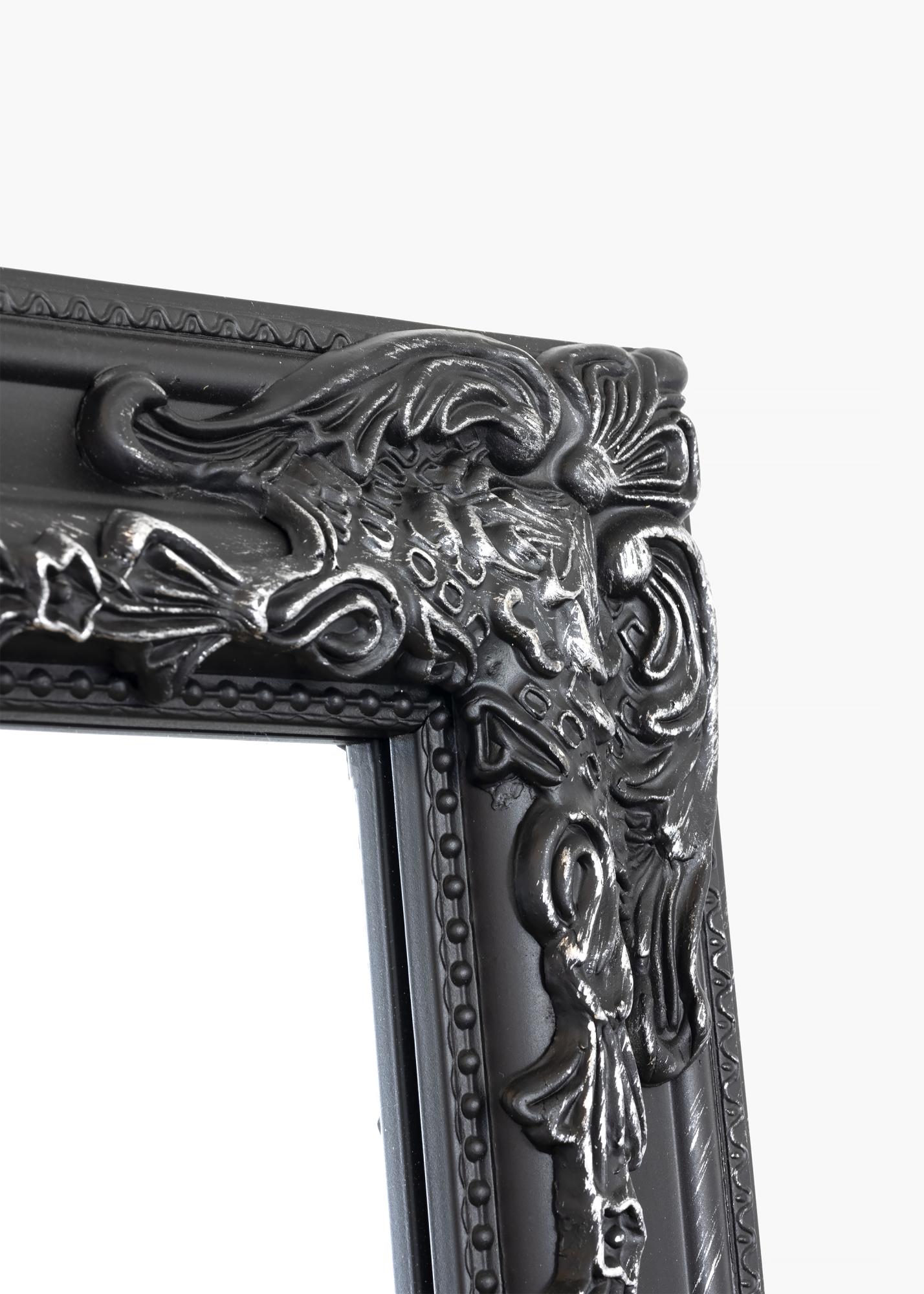 Η σειρά καθρεφτών Bologna Μαύρο έχει λατινική σχεδίαση με πλούσια διακόσμηση στις γωνίες και στα κεντρικά σημεία των πλευρών της κορνίζας. Λίγο πιο στενή κορνίζα από πολλούς άλλους καθρέφτες αυτού του στυλ. Η κορνίζα είναι κατασκευασμένη από ξύλο και η διακόσμηση έχει χυτευθεί σε γύψο πριν εφαρμοστεί στην κορνίζα.