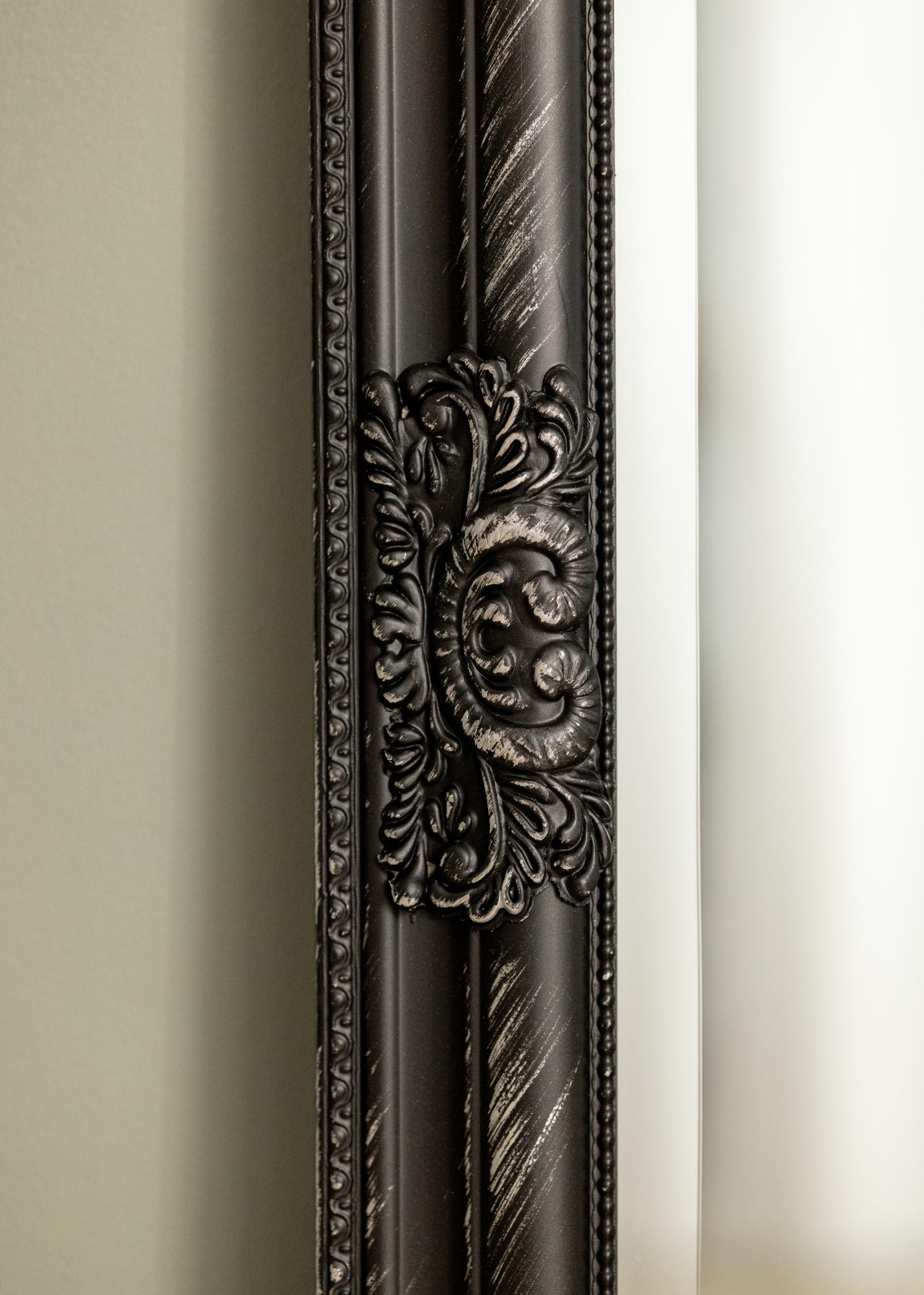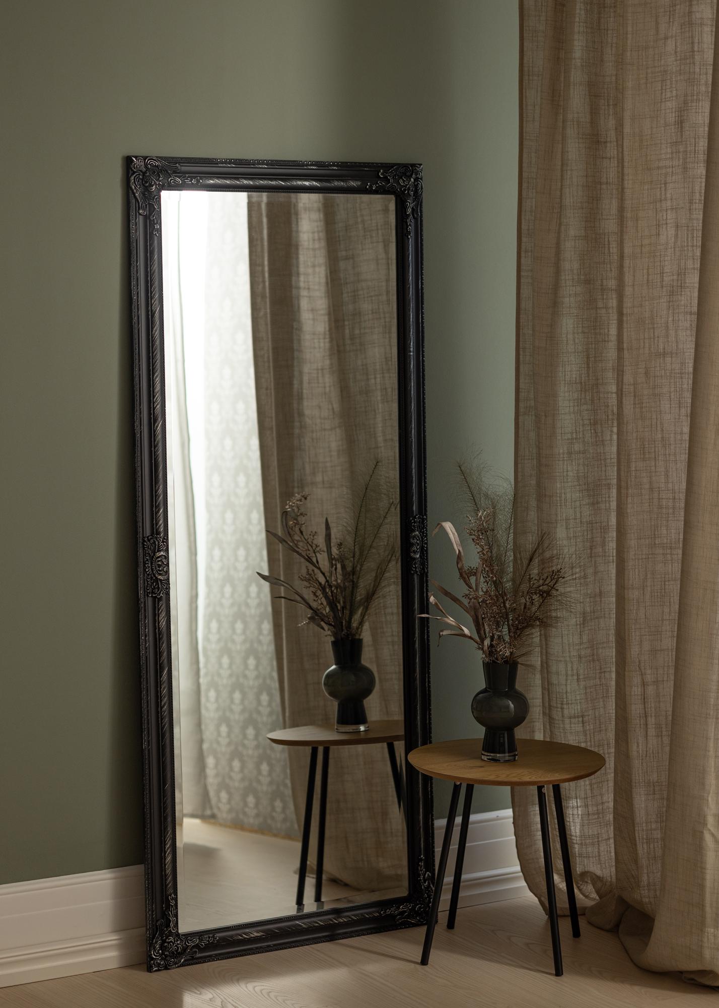 Το βαθύ μαύρο χρώμα του πλαισίου δημιουργεί μια δραματική αντίθεση με το καθαρό γυαλί του καθρέφτη, ενισχύοντας το φως και τον χώρο στο σπίτι σας. Αυτός ο καθρέφτης δεν είναι μόνο ένα πρακτικό αντικείμενο αλλά και μια καλλιτεχνική λεπτομέρεια διακόσμησης που μαγνητίζει το βλέμμα και δίνει χαρακτήρα στον τοίχο σας. Η ορθογώνια μορφή και όρθια τοποθέτησή του τον καθιστούν ιδανικό για υπνοδωμάτια, διαδρόμους ή σαλόνια, όπου θέλετε να προσθέσετε ένα στοιχείο στυλ και λειτουργικότητας.