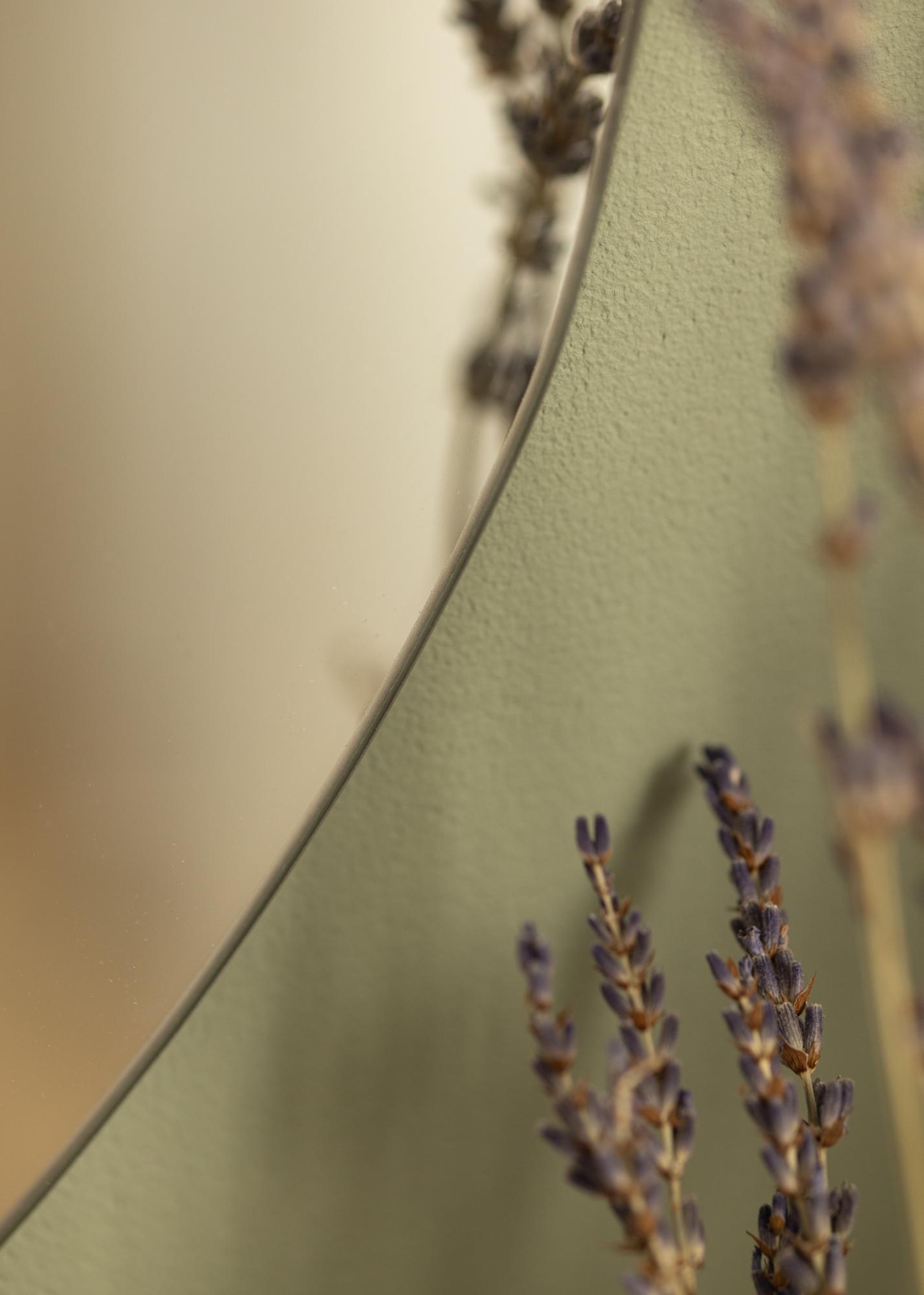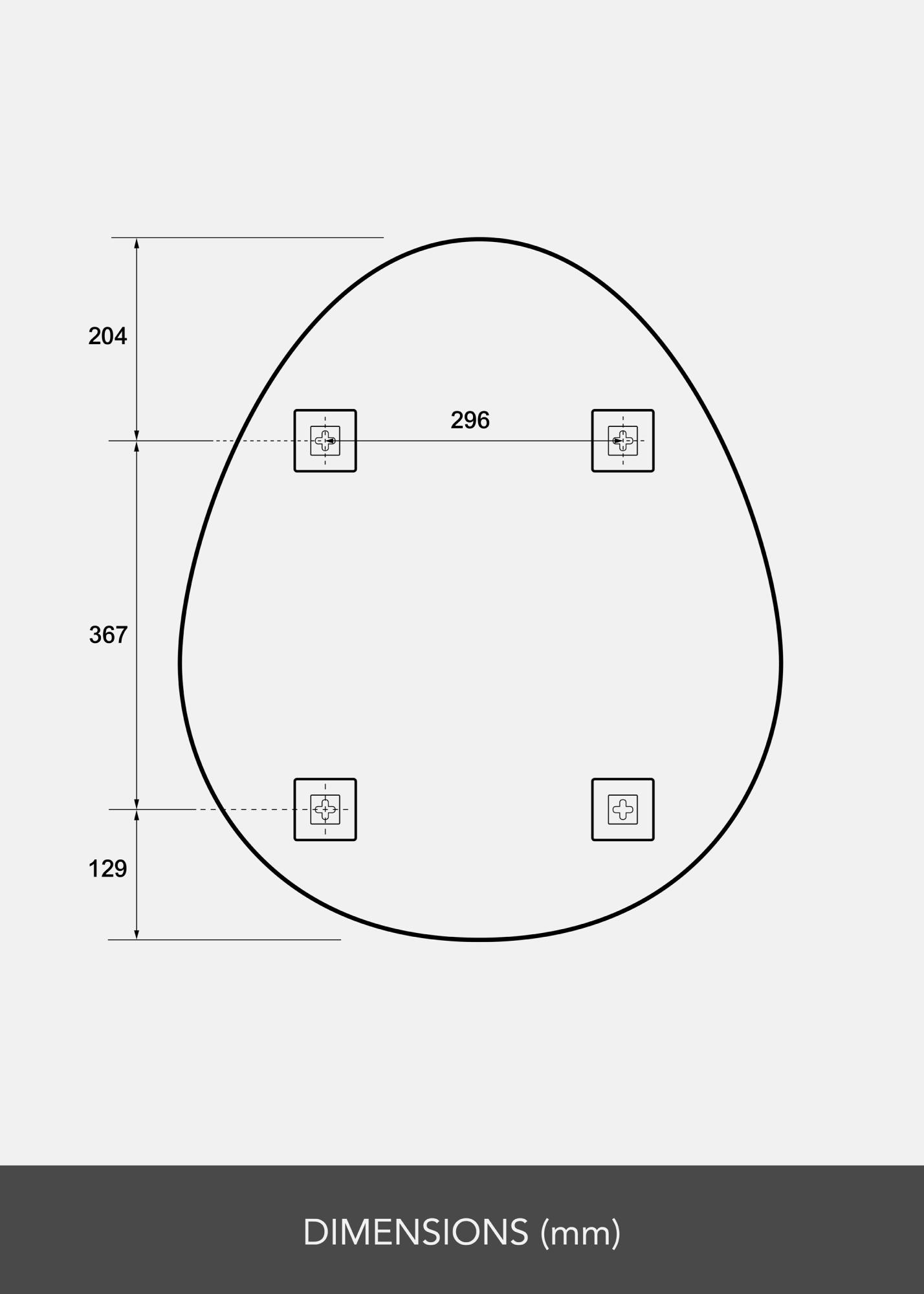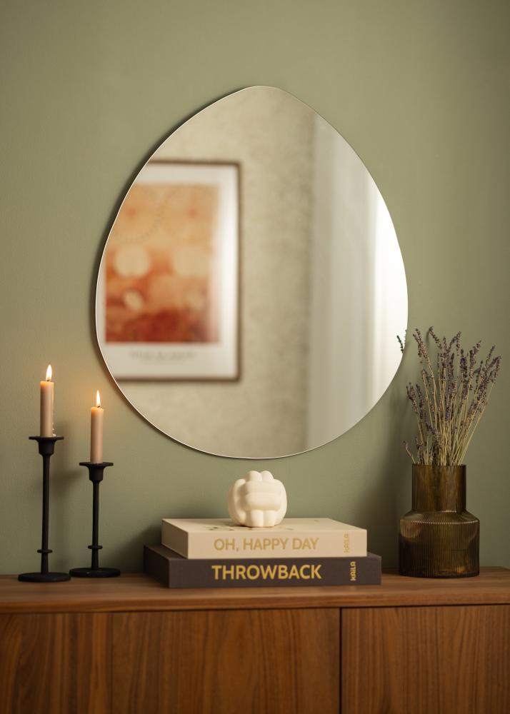 Ο καθρέφτης έχει ένα στρογγυλεμένο περίγραμμα σε σχήμα αυγού με επίπεδη βάση, προσφέροντας μια απαλή και μοντέρνα αισθητική. Η μοναδική του μορφή τον καθιστά να ξεχωρίζει από το πλήθος και να γίνεται ένα ενδιαφέρον θέμα συνομιλίας. Δεν είναι μόνο ένας καθρέφτης, αλλά και ένα έργο τέχνης που ομορφαίνει το σπίτι σας.