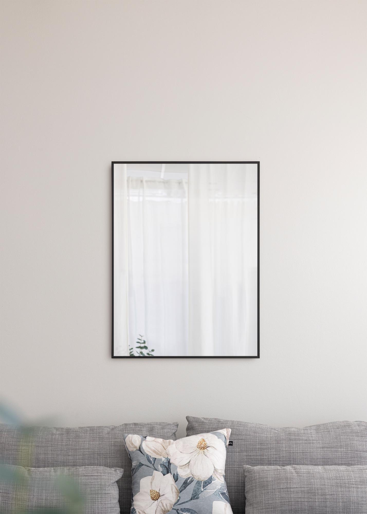Αυτός ο καθρέφτης τοίχου είναι ένας τέλειος συνδυασμός στυλ και λειτουργίας. Το πλαίσιο είναι κατασκευασμένο από αλουμίνιο και έχει πλάτος μόλις 10 χιλιοστά, προσφέροντας μια κομψή, μινιμαλιστική έκφραση. Ο καθρέφτης ανήκει σε μια σειρά καθρεφτών τοίχου σε διάφορα χρώματα και μεγέθη, από τα οποία αυτός είναι μια μαύρη παραλλαγή σε μέγεθος 61,1x81,1 εκ.