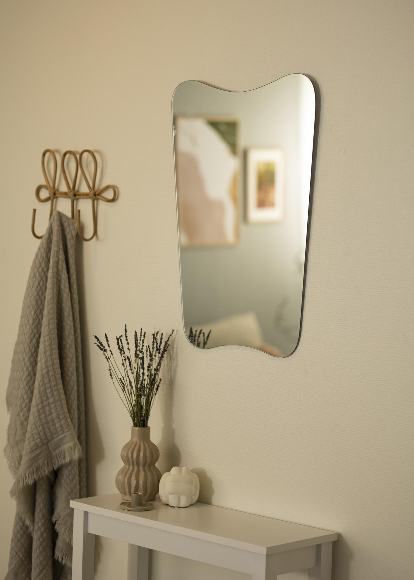 Ανακαλύψτε τον κομψό και μοντέρνο καθρέφτη που έχει σχεδιαστεί για να συμπληρώνει οποιοδήποτε δωμάτιο με την μοναδική του γοητεία. Αυτός ο μοναδικά σχηματισμένος καθρέφτης διαθέτει μαλακές, ρέουσες καμπύλες που δίνουν μια μοντέρνα στροφή στην κλασική ορθογώνια μορφή, και δεν έχει εμφανές πλαίσιο δημιουργώντας μια απρόσκοπτη και κομψή εμφάνιση. Με τις γενναιόδωρες διαστάσεις του 50x70 cm, γίνεται μια πρακτική και διακοσμητική λεπτομέρεια στο σπίτι σας.