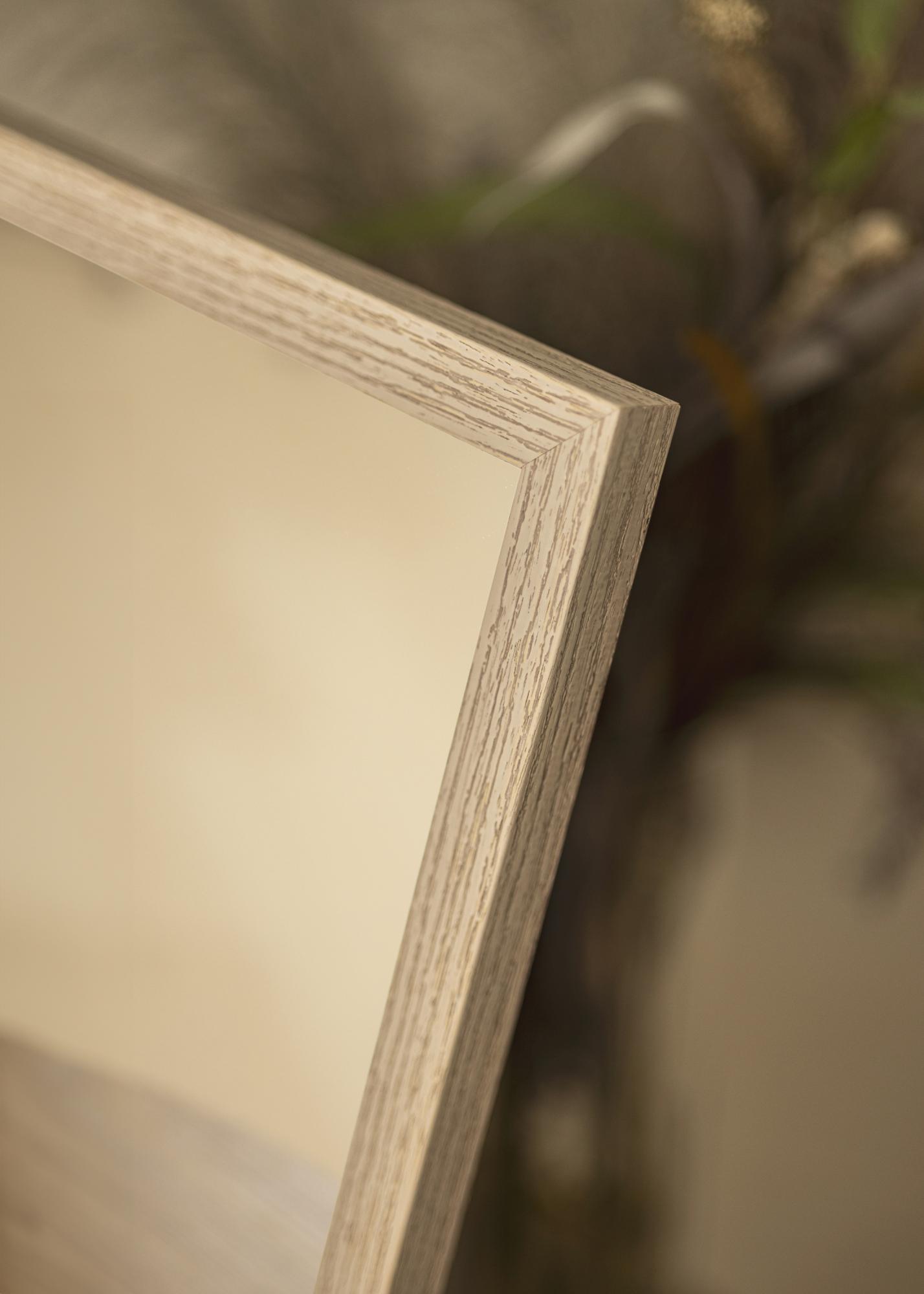 Το πλαίσιο του καθρέφτη έχει πλάτος 20 mm και βάθος 20 mm, προσφέροντας μια διακριτική αλλά σαφή πλαισίωση του καθρέφτη. Κατασκευασμένος από ξύλο ayos, αυτός ο καθρέφτης είναι και ανθεκτικός και ελαφρύς, διευκολύνοντας την ανάρτηση και την τοποθέτηση. Η ματ επιφάνεια συμβάλλει στην ανάδειξη των λεπτομερειών της υφής και δημιουργεί μια απαλή εντύπωση που συμπληρώνει τη συνολική σχεδίαση του καθρέφτη.