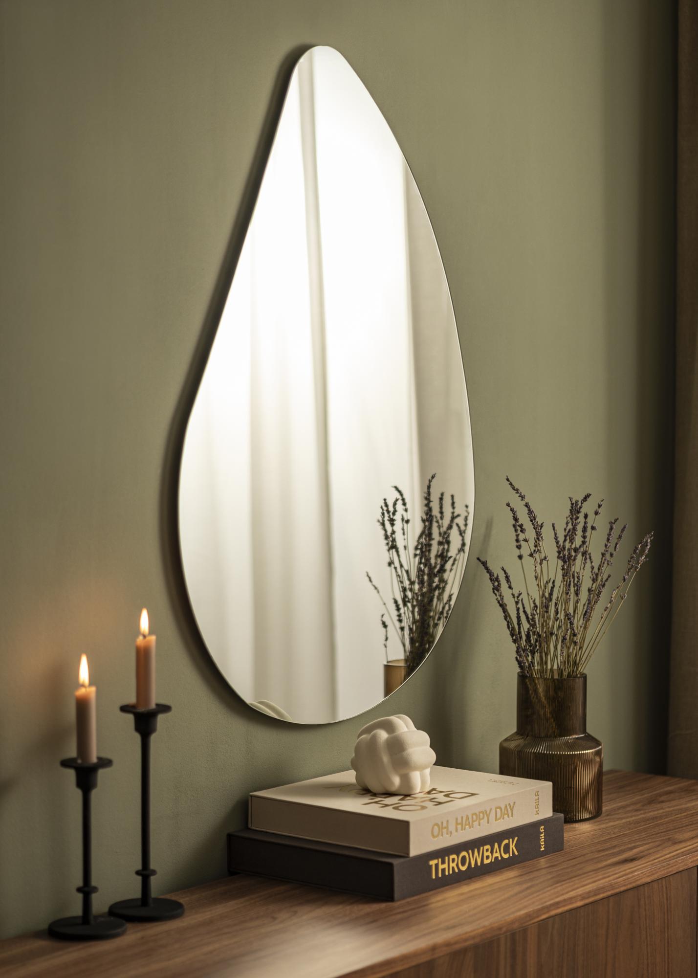 Ανακαλύψτε τη μοναδική γοητεία με τον καθρέπτη μας, ο οποίος συνδυάζει λειτουργία και στυλ με έναν εντυπωσιακό τρόπο. Με διαστάσεις 65x90 εκ., αυτός ο καθρέπτης είναι τέλεια προσθήκη τόσο για μικρούς όσο και για μεγάλους χώρους, ενώ το δυναμικό και οργανικό σχήμα του προσφέρει μια μοντέρνα πινελιά στη διακόσμησή σας. Ο σχεδιασμός του καθρέπτη κυμαίνεται κομψά προς τα πάνω και το καθαρό καθρεπτίζον γυαλί αντανακλά το φως με τρόπο που κάνει το δωμάτιο να φαίνεται μεγαλύτερο και πιο φιλόξενο.