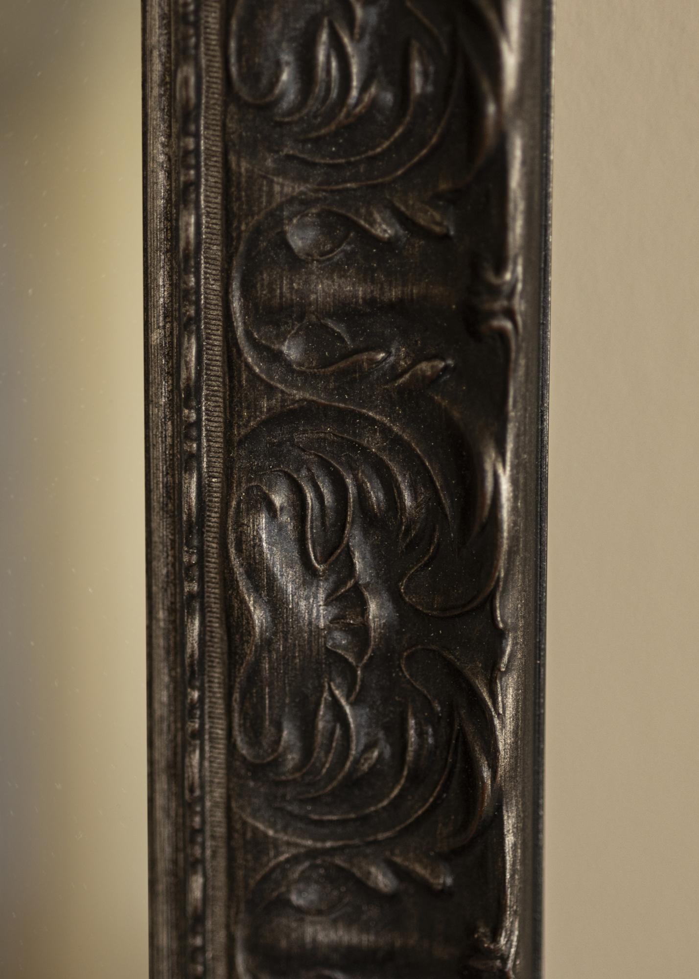 Η κορνίζα του Καθρέφτη Durham Μαύρος έχει πλάτος 70 mm, που προσδίδει στον καθρέφτη μια στιβαρή και συμπαγή αίσθηση. Το βάθος των 35 mm συμβάλλει στη σταθερότητά του και εξασφαλίζει ότι τοποθετείται με ασφάλεια στον τοίχο. Κατασκευασμένος από πεύκο, αυτός ο καθρέφτης έχει σκούρο αντικέ καφέ φινίρισμα που του δίνει μια παλιά εμφάνιση, ενισχύοντας τον κλασικό και ρουστίκ χαρακτήρα του.