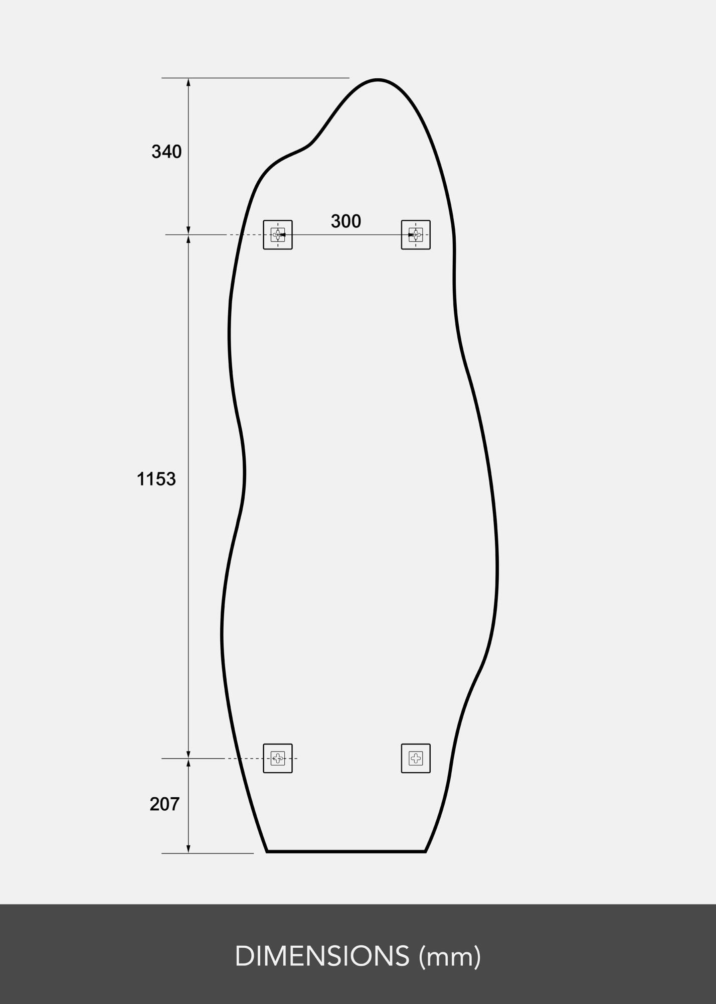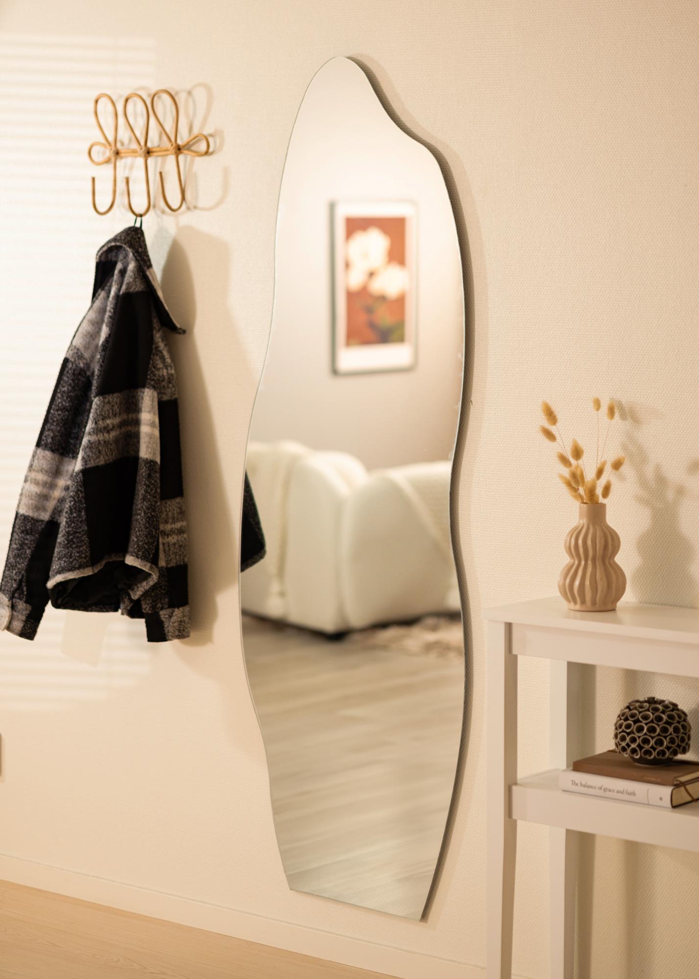 Ο καθρέφτης έχει μια μοναδική, κυματιστή μορφή που είναι πλατιά στη βάση και ανυψώνεται κομψά προς τα πάνω. Αυτή η ασυνήθιστη μορφή τον καθιστά έργο τέχνης καθαυτή και προσθέτει μια δυναμική πινελιά στον τοίχο σας. Είναι σχεδιασμένος να είναι ένα κεντρικό σημείο στο σπίτι σας, είτε τοποθετηθεί στο χολ, το υπνοδωμάτιο ή το σαλόνι.