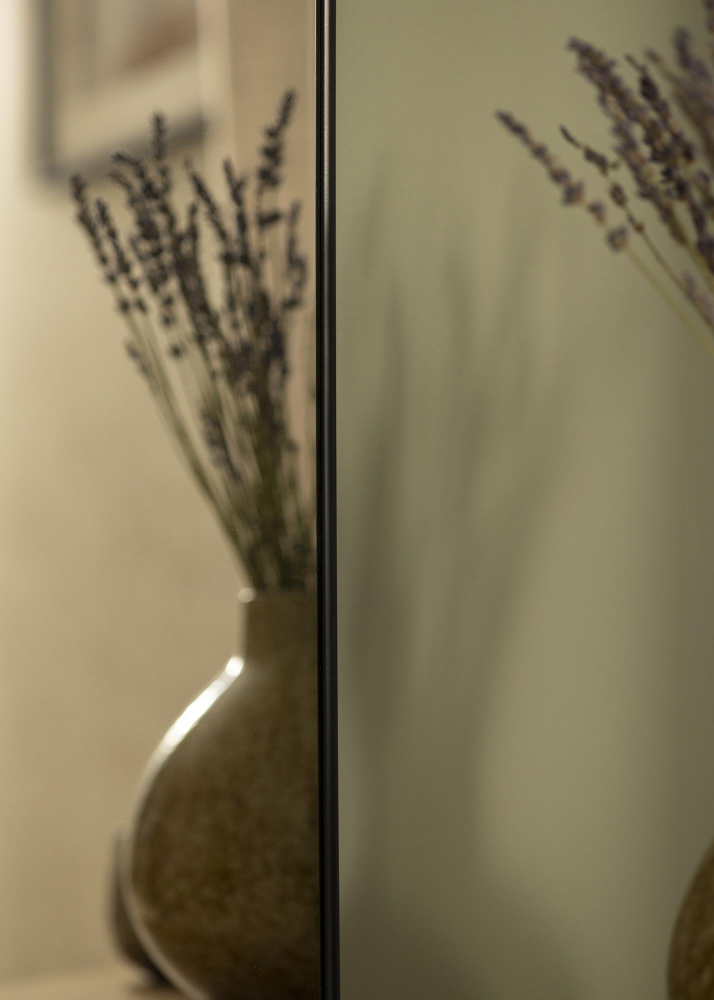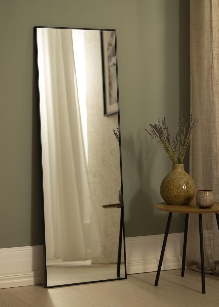 Αυτός ο καθρέφτης είναι κατασκευασμένος για να κρεμιέται κάθετα, καθιστώντας τον εξαιρετική επιλογή για υπνοδωμάτια, διαδρόμους ή δωμάτια-ντουλάπες όπου η κάθετη αξιοποίηση του χώρου είναι κλειδί. Το μαύρο πλαίσιο από αλουμίνιο αγκαλιάζει το καθρέφτινο γυαλί με μια διακριτική αλλά ταυτόχρονα εμφανή άκρη, που συμπληρώνει μια πληθώρα διακοσμητικών στυλ, από μοντέρνο μινιμαλιστικό έως κλασικό κομψό.