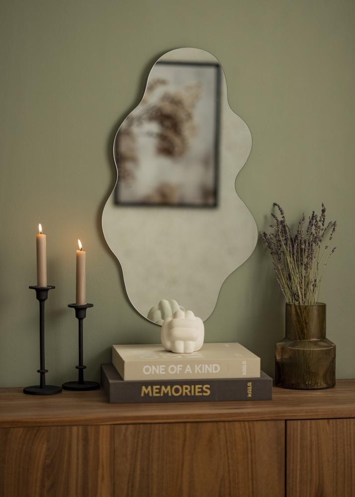 Έχετε πολλές ευθείες γραμμές στο σπίτι σας; Τότε είναι πολύ κομψό να σπάσετε με έναν καθρέφτη με απαλή κυματιστή μορφή! Ο Fierce Cloud είναι ένας μοντέρνος επιτοίχιος καθρέφτης χωρίς πλαίσιο, με σχεδιασμό με κυματιστές άκρες. Το λεπτό καθρεφτικό γυαλί των 4 mm κάνει τον καθρέφτη να φαίνεται κομψός και λεπτός, μια εμφάνιση που ταιριάζει εξίσου στο υπνοδωμάτιο όσο και στο σαλόνι. Έχει μέγεθος 40x70 cm.