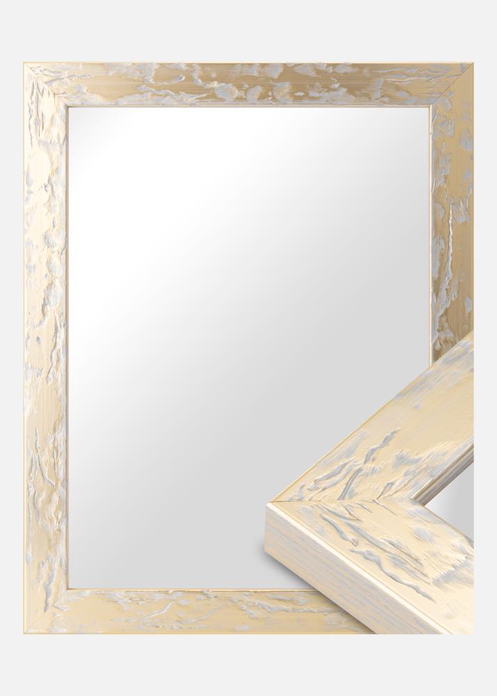 Η Freja είναι ένας όμορφος χρυσός καθρέφτης με μια ανώμαλη επιφάνεια με έντονες νευρώσεις και ασημί ανομοιομορφίες. Με τον συνδυασμό ασημί και χρυσού χρώματος, η Freja αποκτά μια ευχάριστη απόχρωση που κλίνει περισσότερο προς το ασημί παρά προς το χρυσό. Με το βαθύ της προφίλ των 30mm, η Freja Gold προεξέχει λίγο από τον τοίχο, προσδίδοντας έναν όμορφο βάθος στον καθρέφτη.