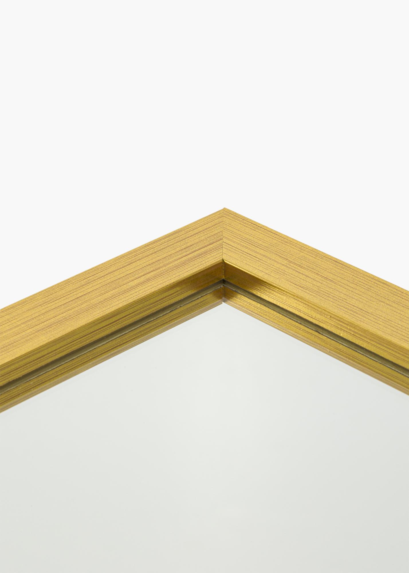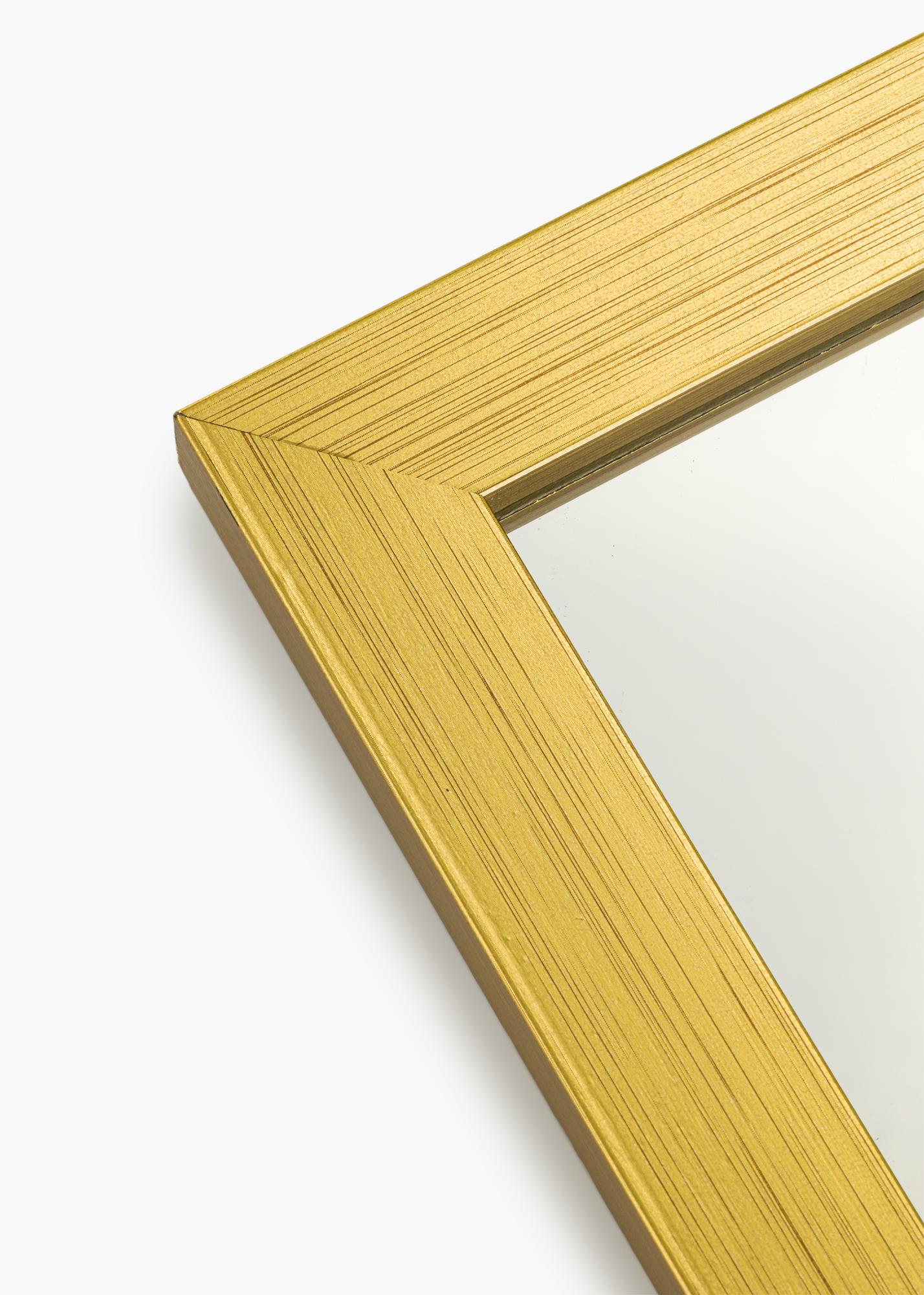 Gold Wood - όταν η απλότητα συναντά την πολυτέλεια! Αυτός είναι ένας επιτοίχιος καθρέφτης με 22 mm φαρδιά κορνίζα κατασκευασμένη από ξύλο ayo. Η κορνίζα έχει ένα κλασικό ευθύ προφίλ που δίνει στον καθρέφτη μια μινιμαλιστική αίσθηση, ενώ το βαμμένο χρυσαφί χρώμα προσθέτει μια πινελιά κομψότητας.