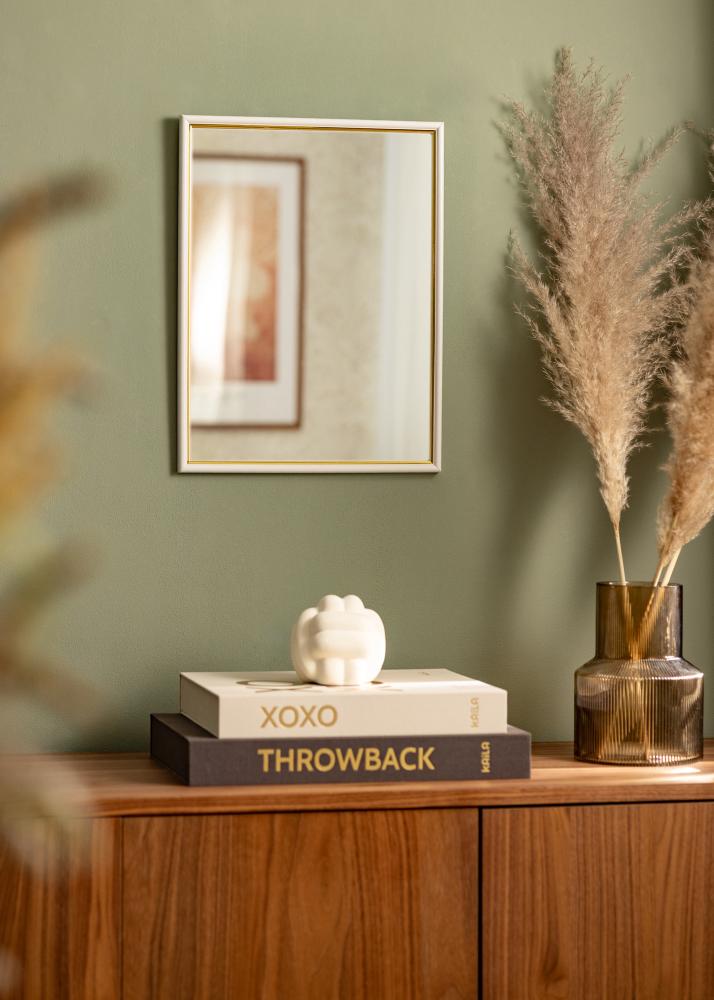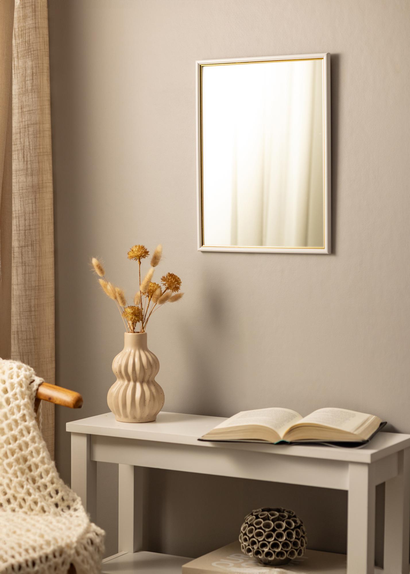 Στοιχηματίστε σε διακριτικές, πολυτελείς λεπτομέρειες για ένα εκλεπτυσμένο σπίτι. Αυτός ο καθρέφτης κατά παραγγελία κατασκευάζεται στο εργαστήριό μας σύμφωνα με τις επιθυμίες σας. Η λευκή λίστα έχει ένα χρυσόκορη τμήμα κοντά στο γυαλί. Συνδυάζεται ιδανικά με διακοσμητικά στοιχεία σε λευκό, μαύρο, χρυσό και παστέλ!