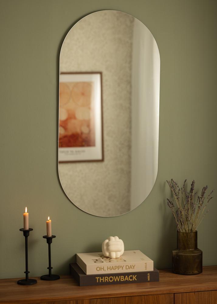 Η επιμήκη, οβάλ μορφή με τη λεία και στρογγυλεμένη καμπύλη προσφέρει μια αρμονική αίσθηση στο δωμάτιο. Ο σχεδιασμός του καθρέπτη δεν είναι μόνο αισθητικά ευχάριστος αλλά και λειτουργικός, με τη δυνατότητα να αποφασίσετε μόνοι σας ποια πλευρά θα είναι επάνω ή κάτω για να ταιριάζει ακριβώς στη διακόσμησή σας. Ανεξάρτητα από το πού τον τοποθετείτε, αυτός ο καθρέπτης θα γίνει ένα λεπτομερές στοιχείο στο σπίτι σας.