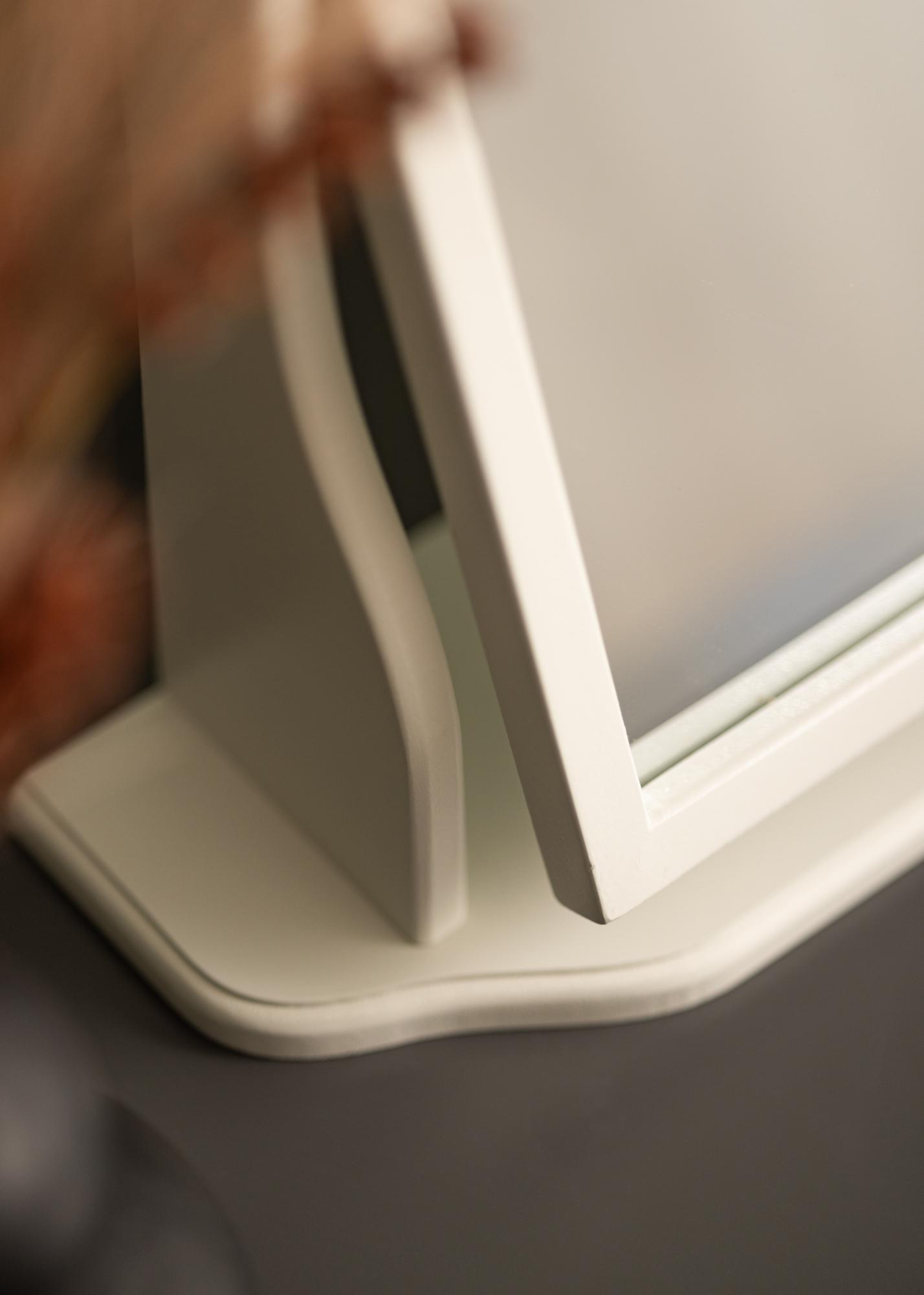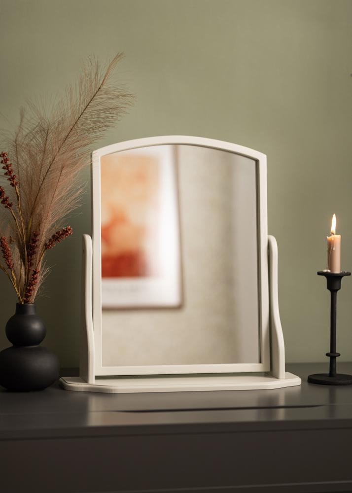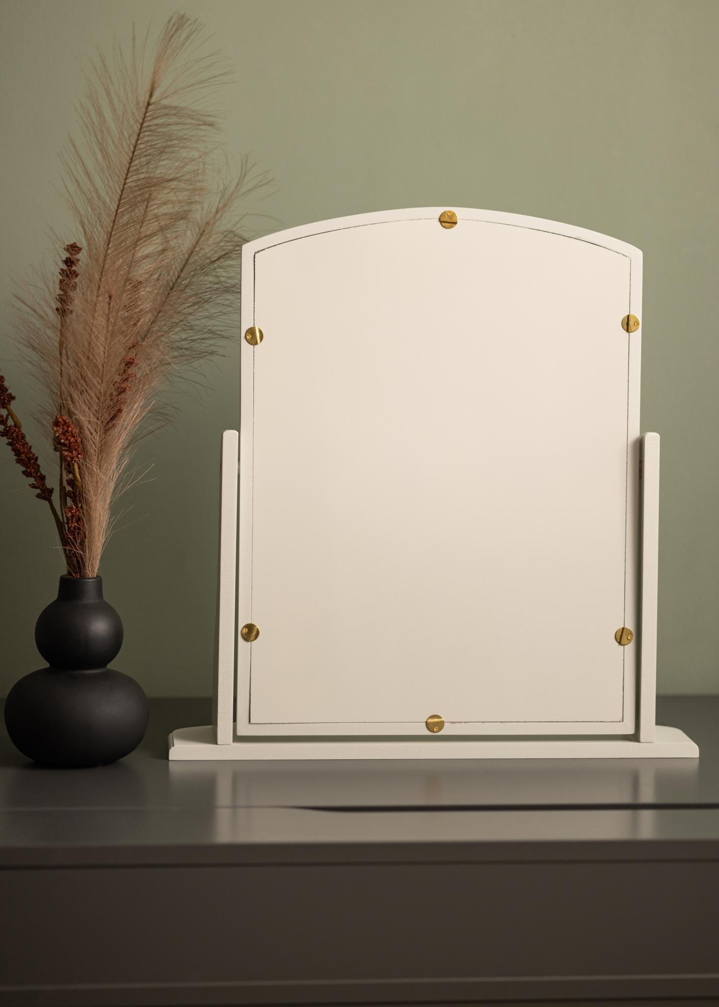 Αυτός ο καθρέφτης είναι σχεδιασμένος με ένα γκρι πλαίσιο που προσδίδει μια διακριτική και εκλεπτυσμένη πινελιά στο δωμάτιο. Στέκεται σταθερά σε μια ανθεκτική βάση, καθιστώντας τον ιδανικό για χρήση σε τραπέζι ή συρταριέρα όπου ετοιμάζεστε για την ημέρα ή τη νύχτα.