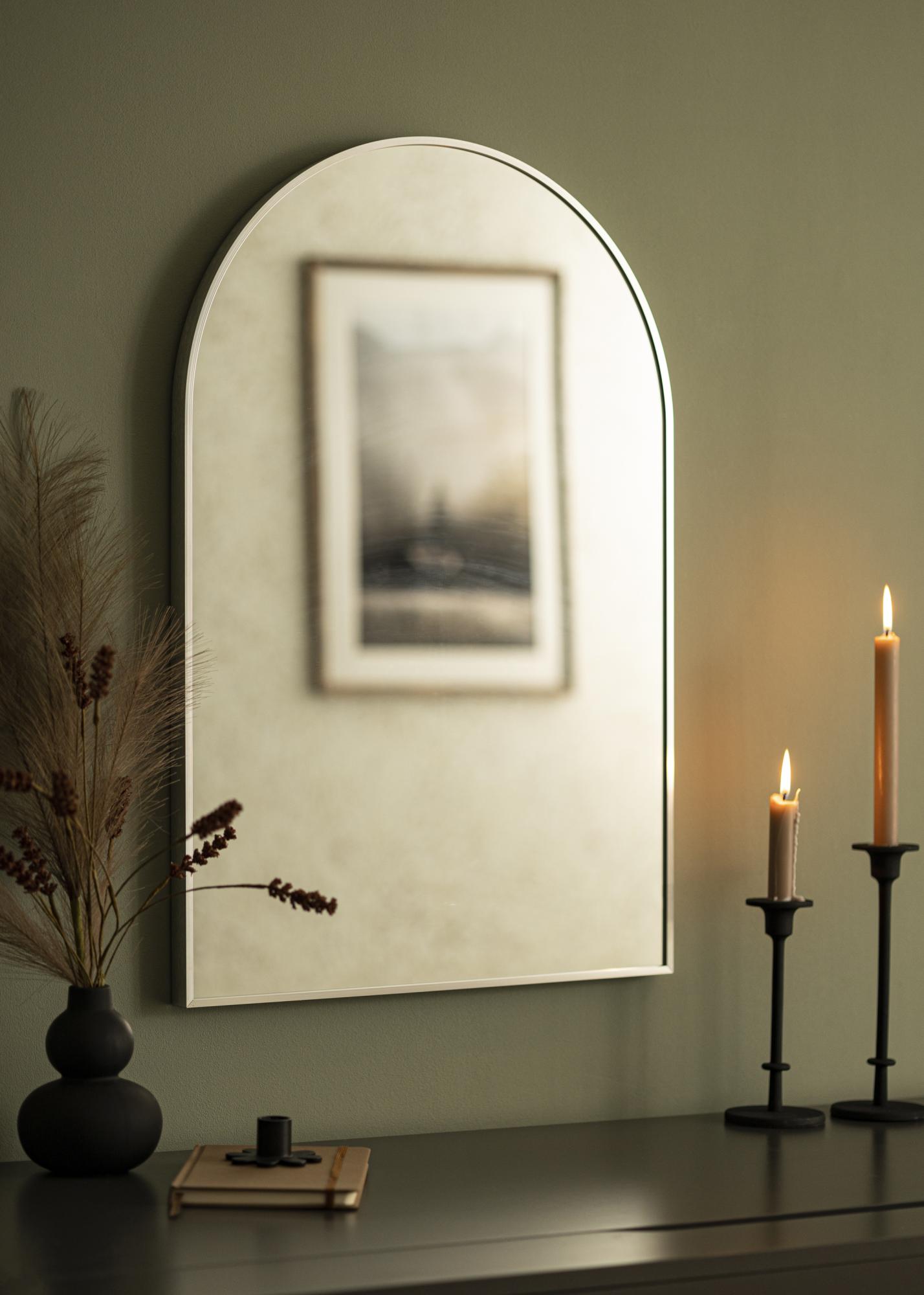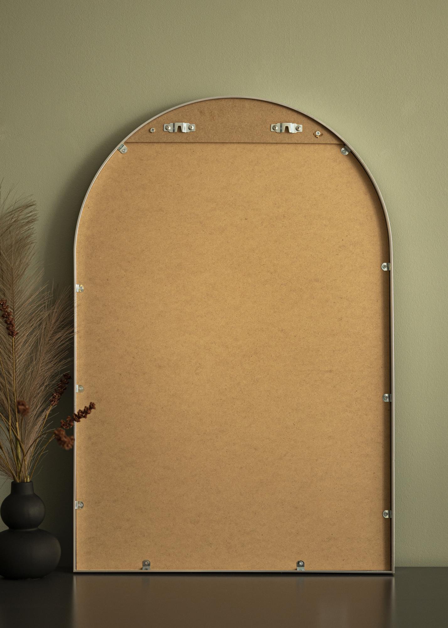 Αυτός ο επιτοίχιος καθρέφτης είναι τόσο μοντέρνος όσο και λειτουργικός – με άλλα λόγια τέλειος για κάθε σπίτι! Ο τοξωτός σχεδιασμός συμπληρώνεται από ένα πλαίσιο βάθους 28 χιλιοστών σε ασημί απόχρωση, που προσδίδει στον καθρέφτη μια σύγχρονη έκφραση. Το πλαίσιο είναι κατασκευασμένο από μέταλλο.