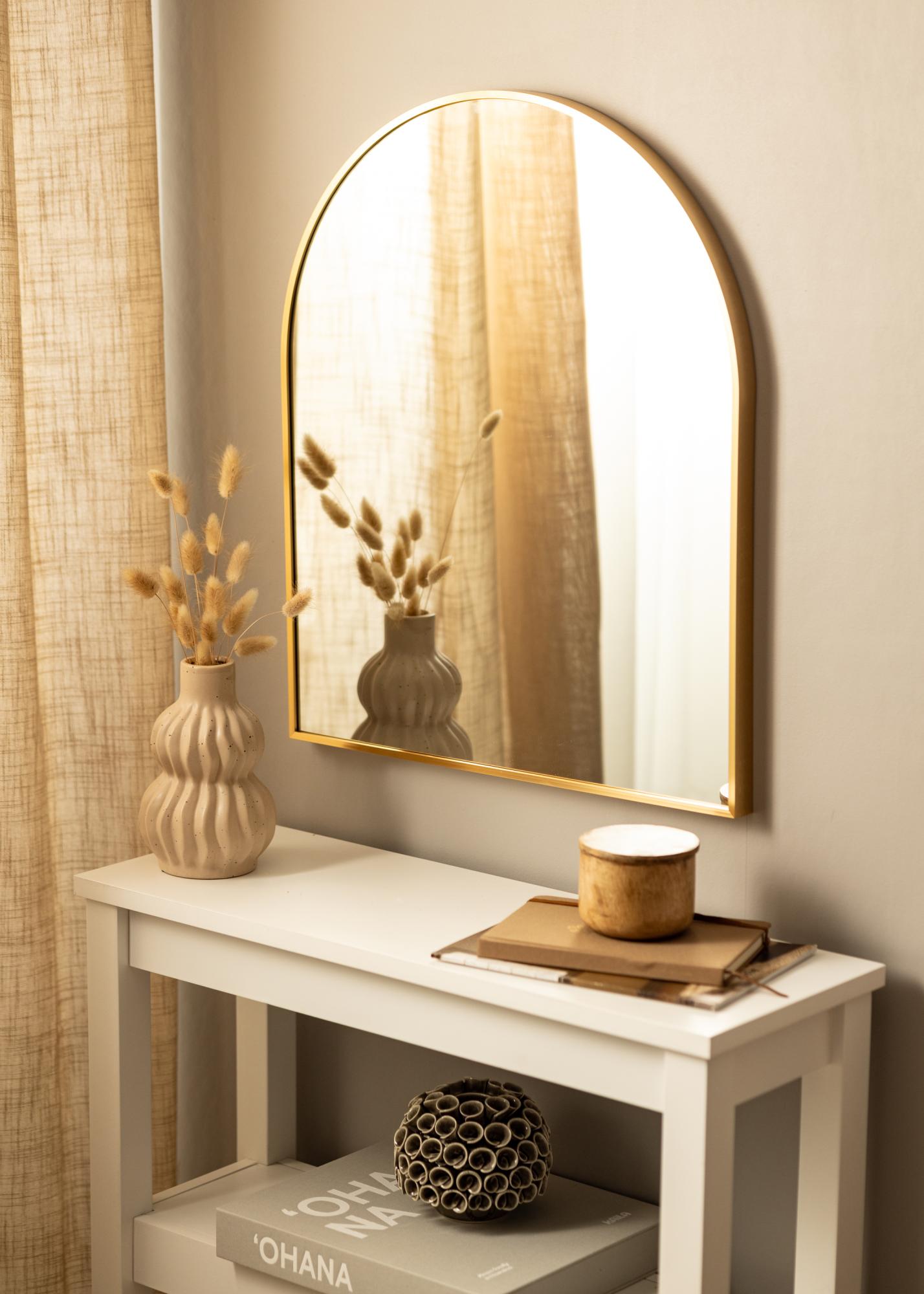 Αυτός είναι ένας μοντέρνος καθρέφτης τοίχου που μπορεί να χρησιμοποιηθεί σε κάθε δωμάτιο. Μπορείτε είτε να τον αφήσετε να γίνει μια μοντέρνα λεπτομέρεια στην κρεβατοκάμαρα ή το σαλόνι, είτε να τον χρησιμοποιήσετε ως καθρέφτης μπάνιου ή διαδρόμου για να μπορείτε να καθρεφτίζεστε σωστά όταν ετοιμάζεστε για την ημέρα. Ο καθρέφτης έχει ένα πλαίσιο από μέταλλο βάθους 28 mm, με μια αποκλειστική χρυσή απόχρωση που του προσδίδει μια εξαιρετική φινέτσα. Η κομψή, εμπνευσμένη από το σχήμα της φάλαινας μορφή ενισχύει περαιτέρω την πολυτελή έκφραση.