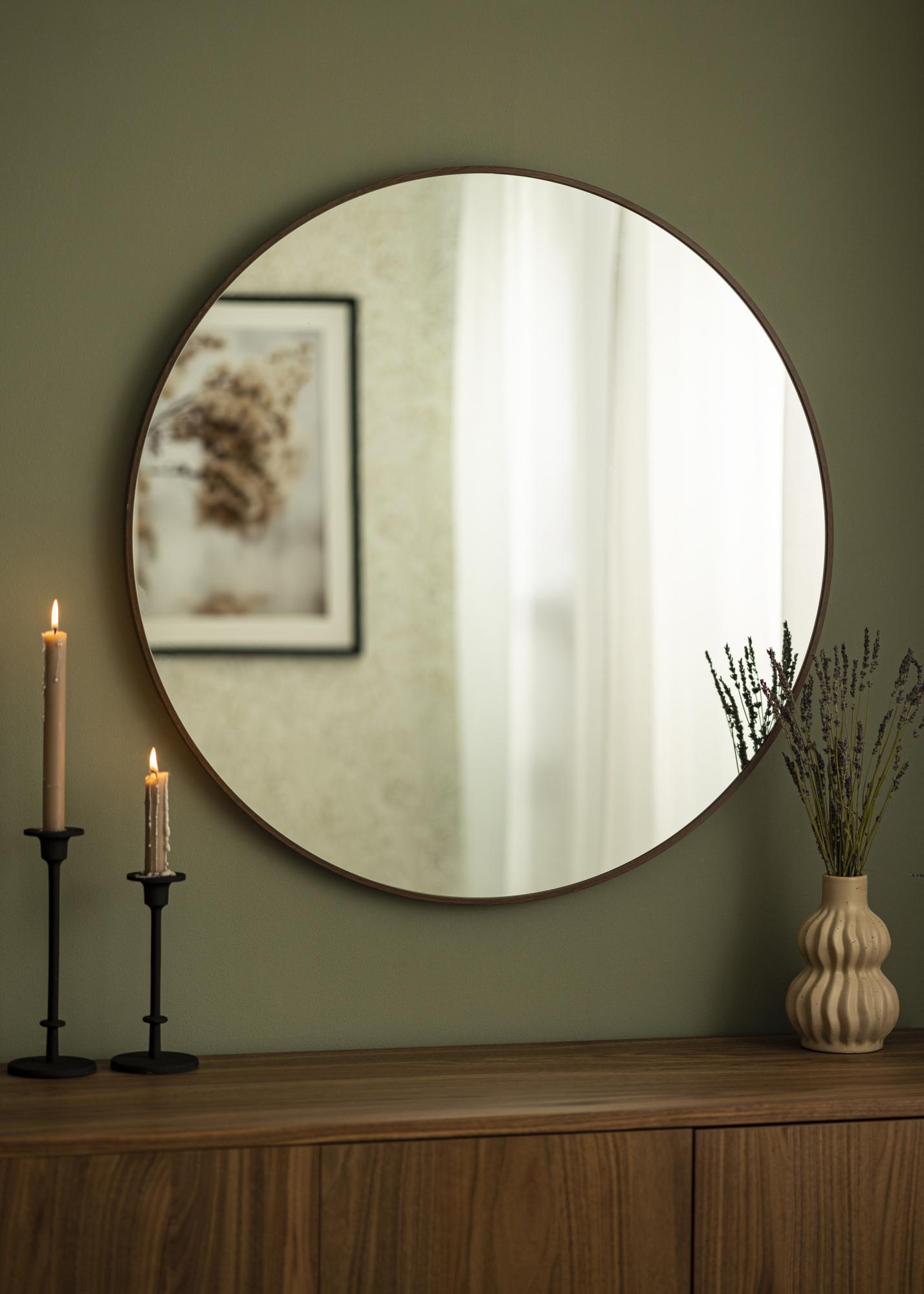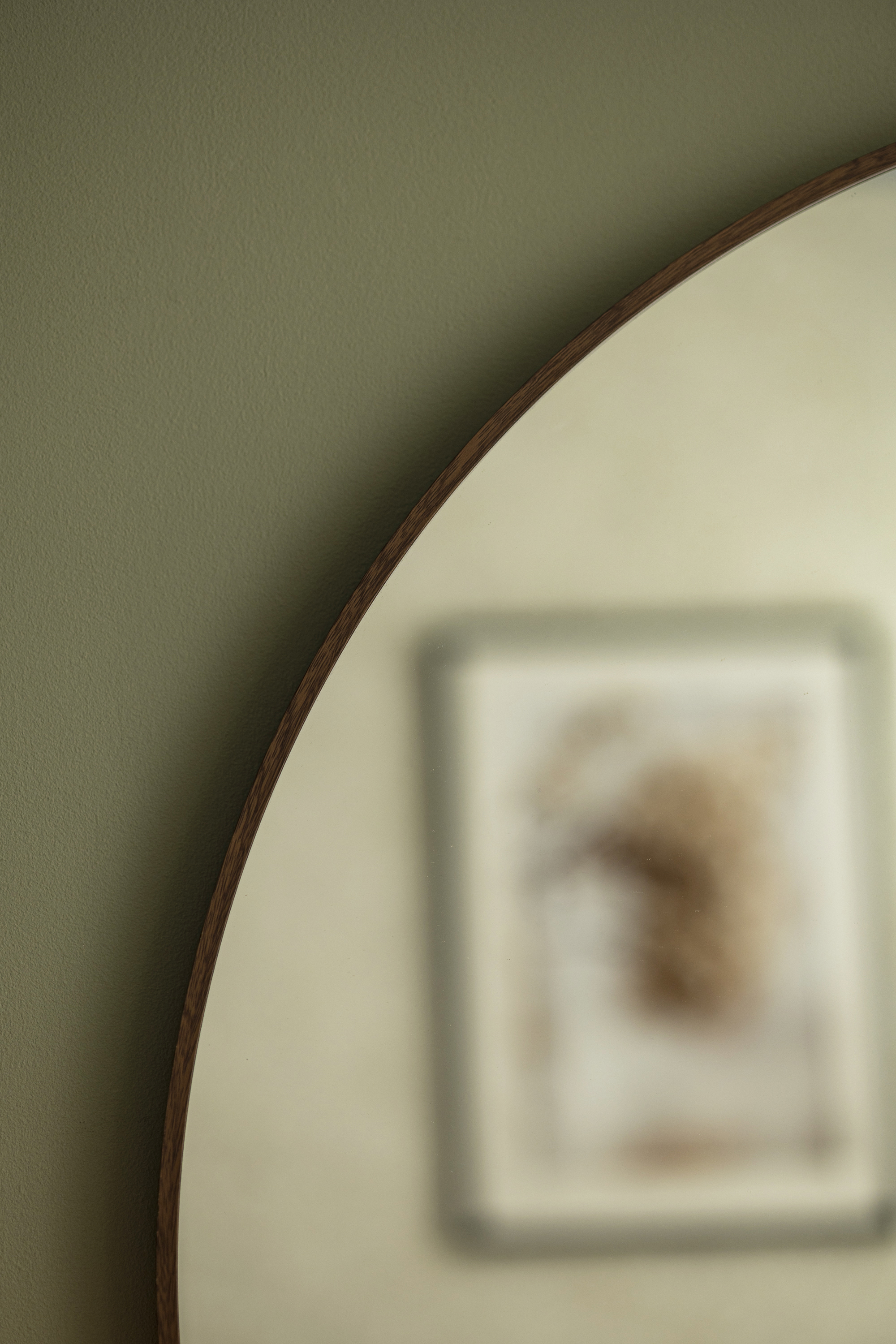 Ανακαλύψτε την κομψή απλότητα με τον επιτοίχιο καθρέφτη μας, ιδανικό για να προσθέσετε μια αίσθηση χώρου και φωτός στο σπίτι σας. Με εντυπωσιακή διάμετρο 80 εκ., αυτός ο καθρέφτης γίνεται αμέσως σημείο αναφοράς σε οποιοδήποτε δωμάτιο. Η στρογγυλή του μορφή προσφέρει μια απαλή και φιλόξενη αίσθηση, ενώ το πλαίσιο από αλουμίνιο σε χρώμα καρυδιάς προσθέτει μια πινελιά κομψότητας.