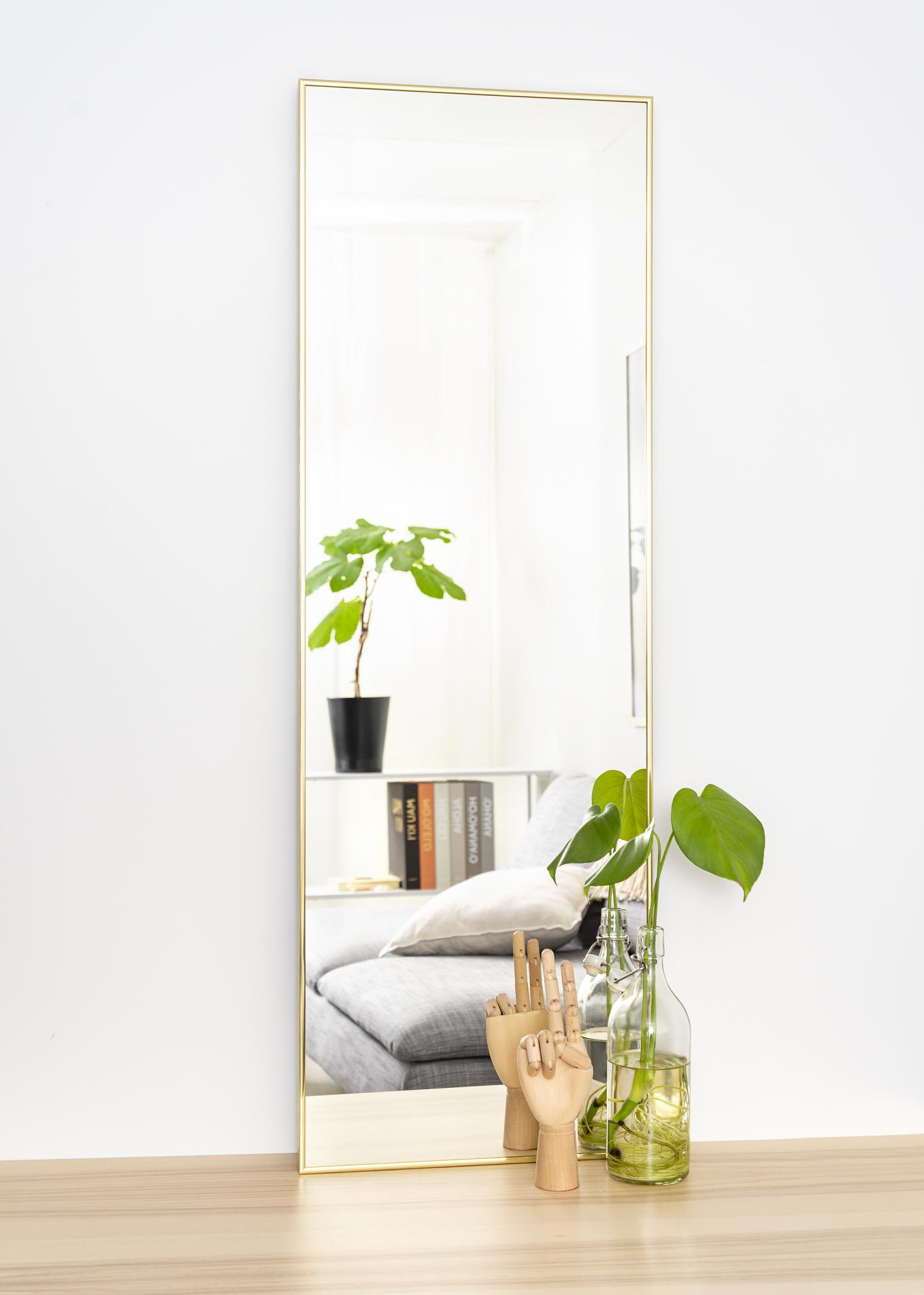 Ο καθρέφτης έχει ένα πλαίσιο από αλουμίνιο σε χρυσό χρώμα και κρεμιέται εύκολα στον τοίχο χάρη στα έξυπνα επιτοίχια στηρίγματα. Διαστάσεις: 40x120 εκ.