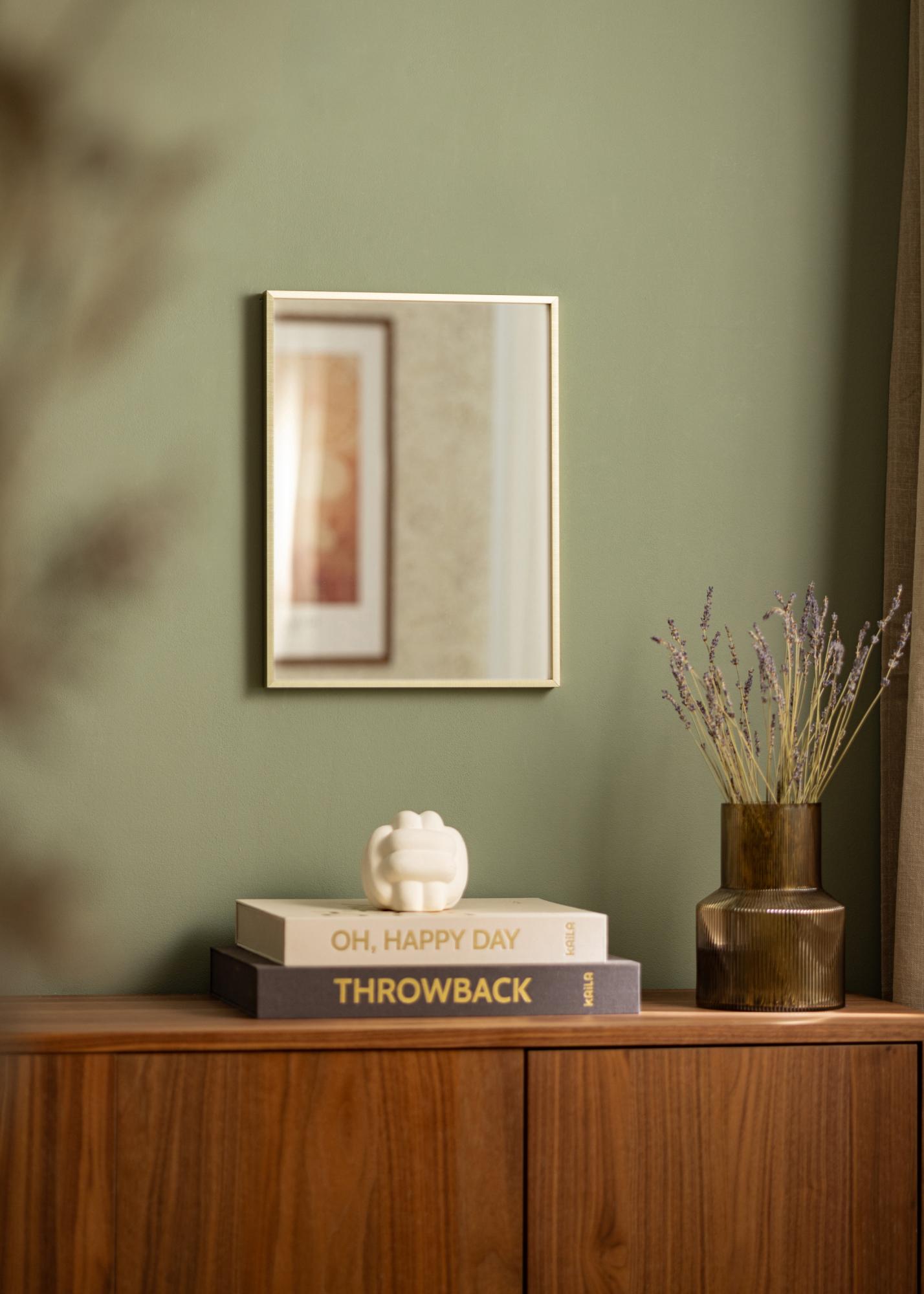 Το πλαίσιο αυτού του καθρέφτη είναι 7,8 mm πλάτος και έχει βάθος 25,9 mm, που του προσδίδει μια στιβαρή και σταθερή αίσθηση. Κατασκευασμένος από αλουμίνιο, συνδυάζει ανθεκτικότητα με ελαφρύ βάρος, γεγονός που καθιστά εύκολη την τοποθέτησή του στον τοίχο. Το βουρτσισμένο χρυσό φινίρισμα προσφέρει μια μοντέρνα και σοφιστικέ εμφάνιση που ταιριάζει τόσο σε κλασικά όσο και σε σύγχρονα στυλ διακόσμησης.
