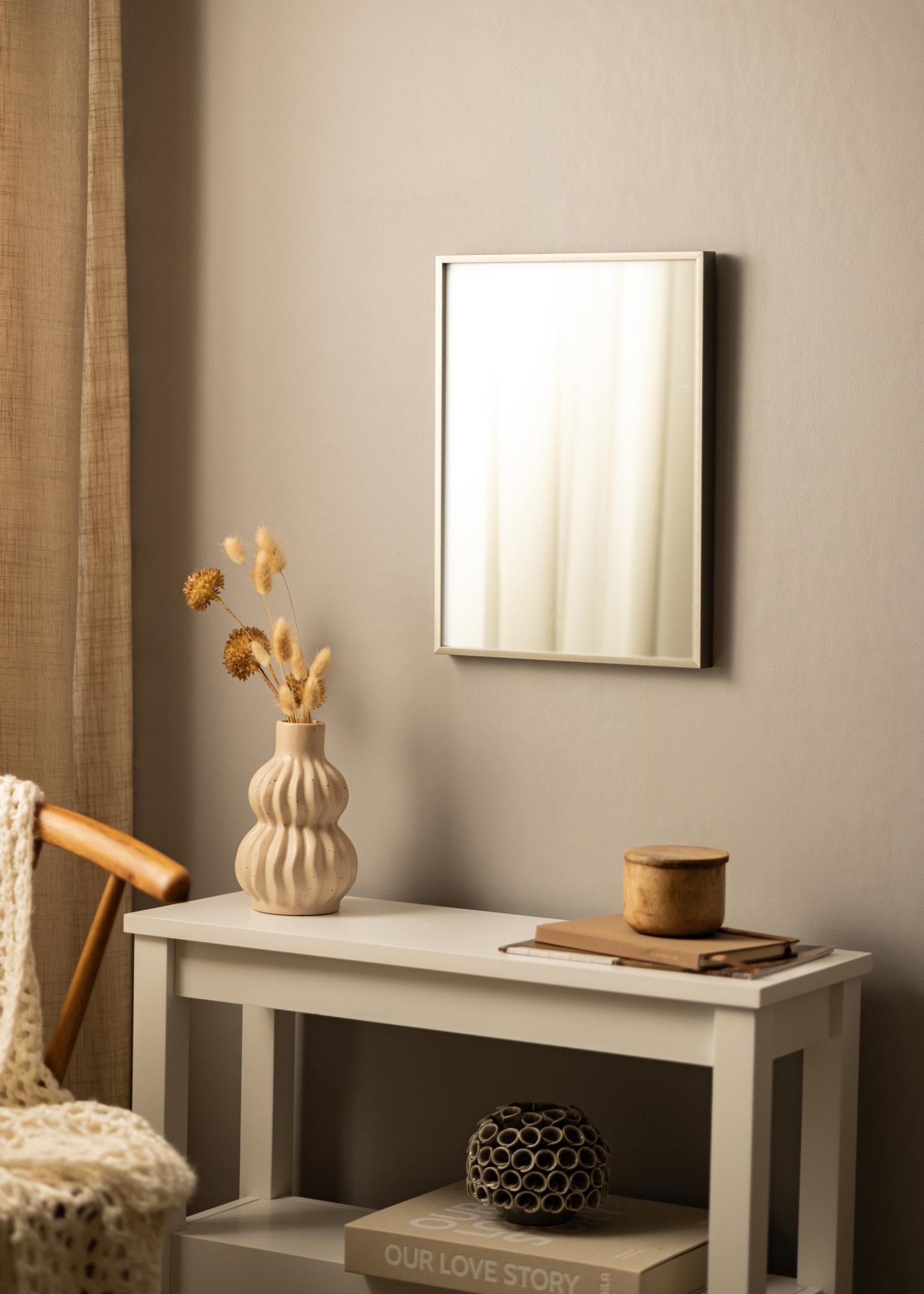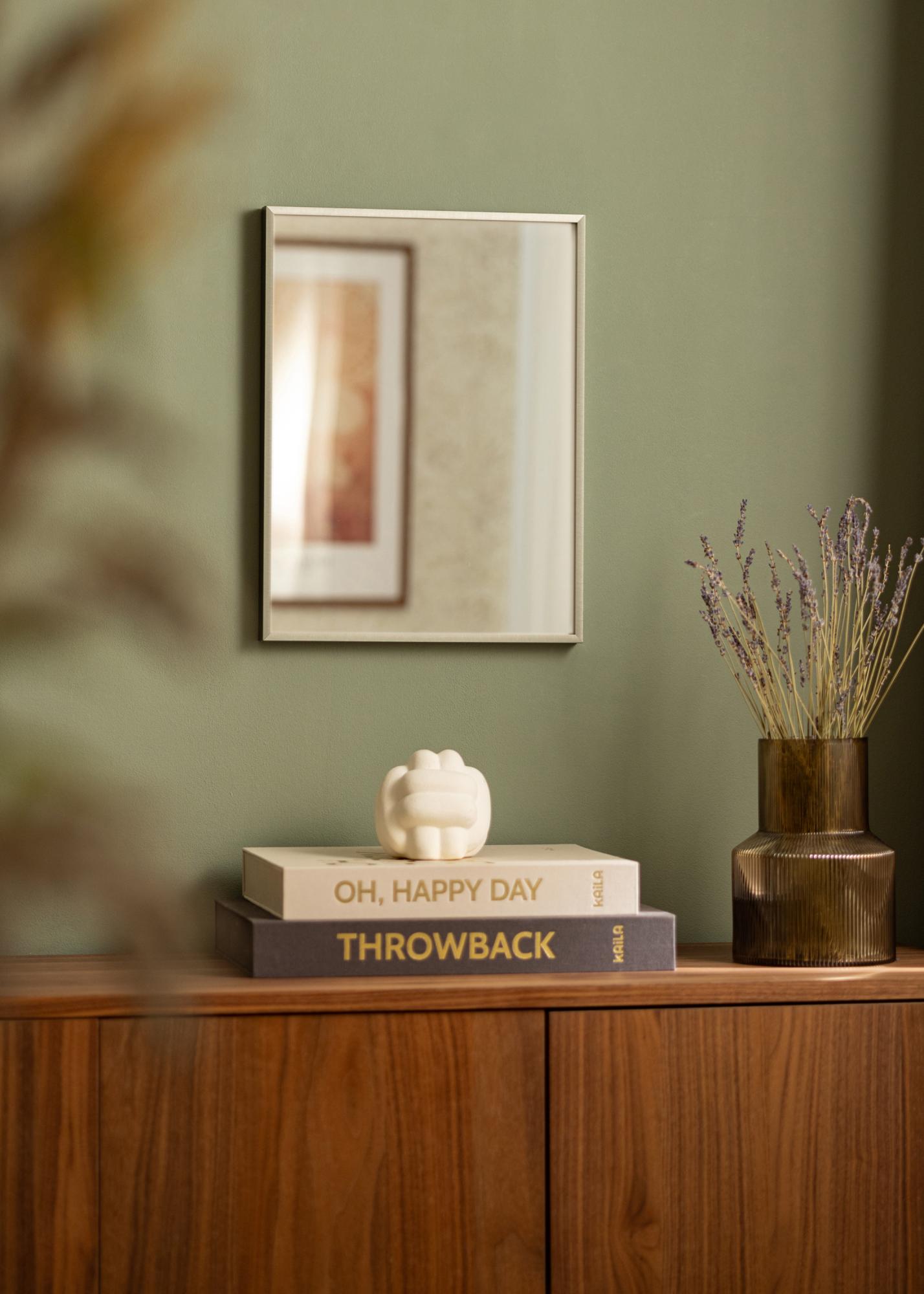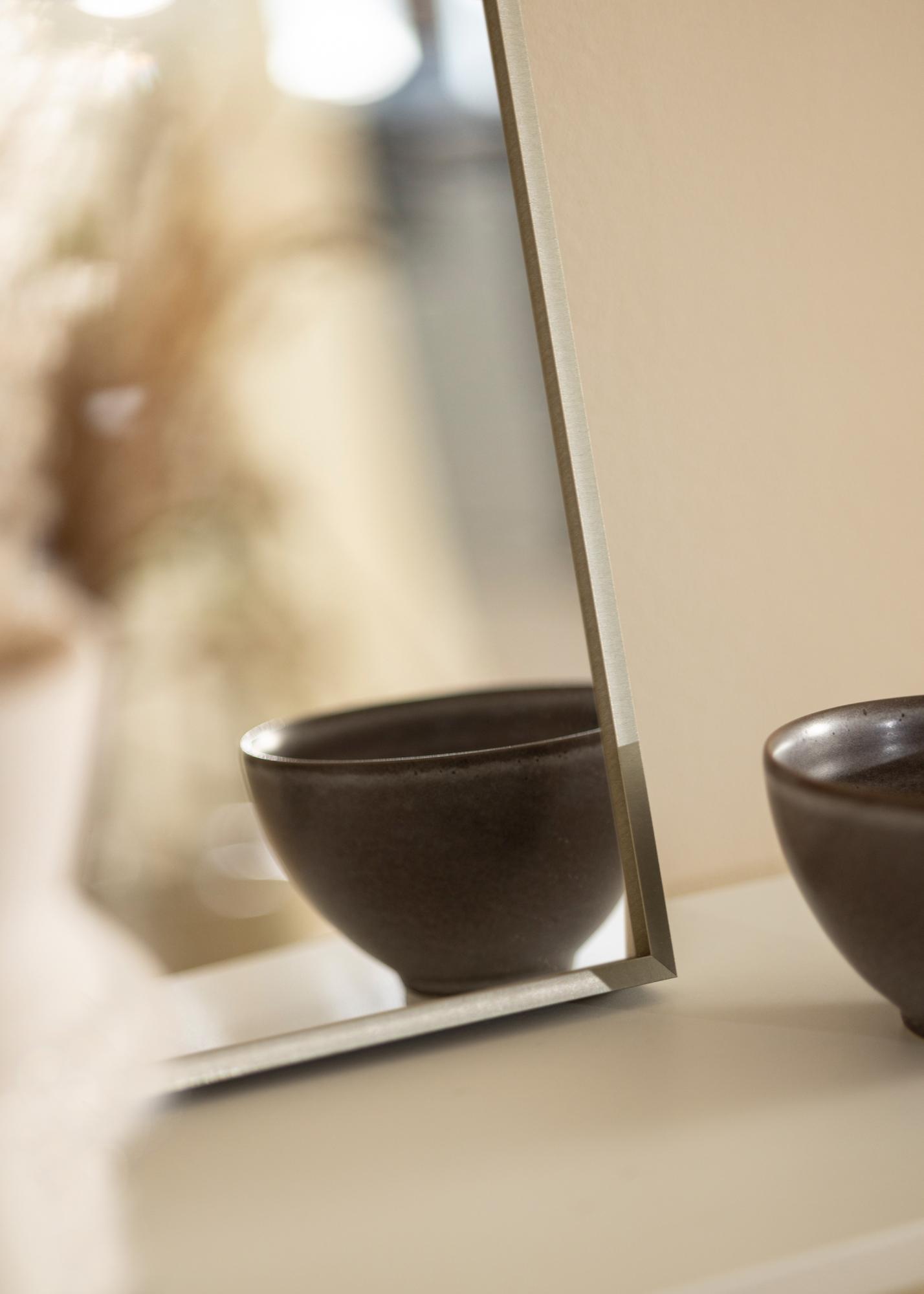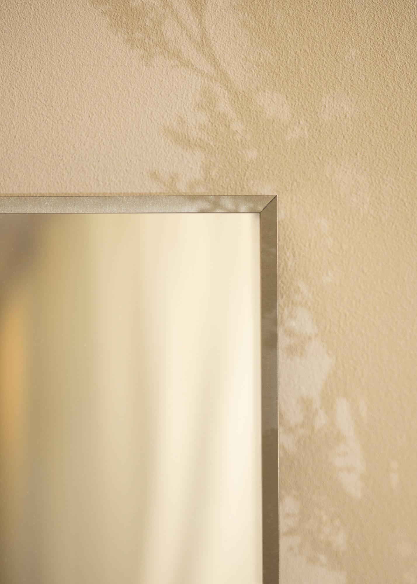 Αυτός ο καθρέφτης διαθέτει ένα όμορφο ασημί χρώμα που προσδίδει μια διαχρονική και εκλεπτυσμένη εντύπωση. Το πλαίσιο είναι 7,8 mm πλατύ και κατασκευασμένο από αλουμίνιο, γεγονός που προσδίδει στον καθρέφτη μια στιβαρή και ανθεκτική κατασκευή, ενώ παράλληλα διατηρεί μια ελαφριά και ευέλικτη αίσθηση. Το βάθος των 25,9 mm επιτρέπει στον καθρέφτη να εφάπτεται σταθερά στον τοίχο και να προσφέρει μια κομψή εμφάνιση.