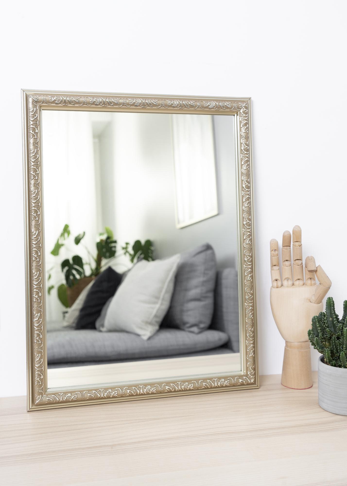 Ξεκινήστε τον επιλογέα κορνίζας »Η Nost Silver είναι μια σειρά από καθρέφτες τοίχου. Το πλαίσιο είναι πλούσια διακοσμημένο με ακανόνιστα σύμβολα που δίνουν μια λίγο μυστήρια εντύπωση.