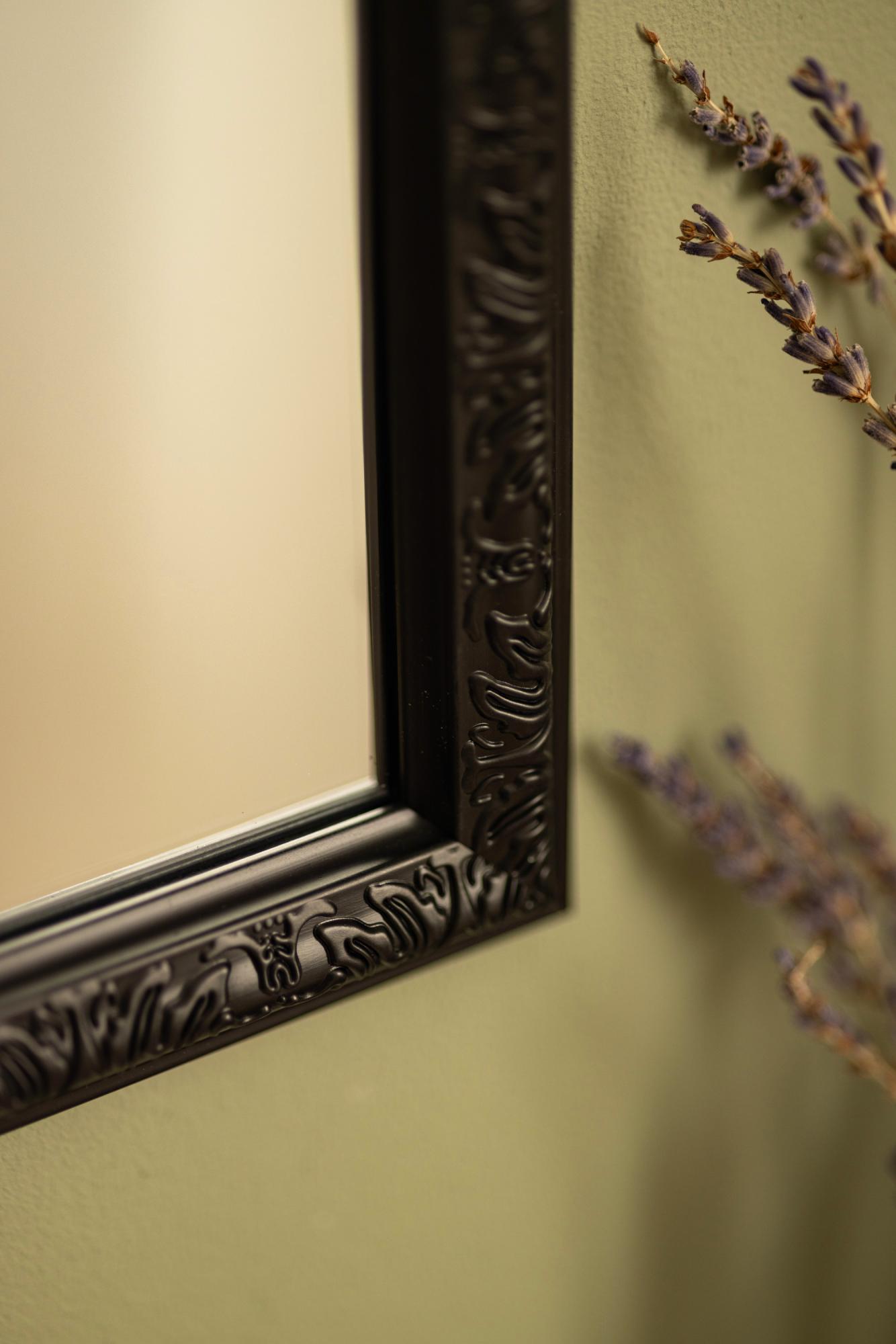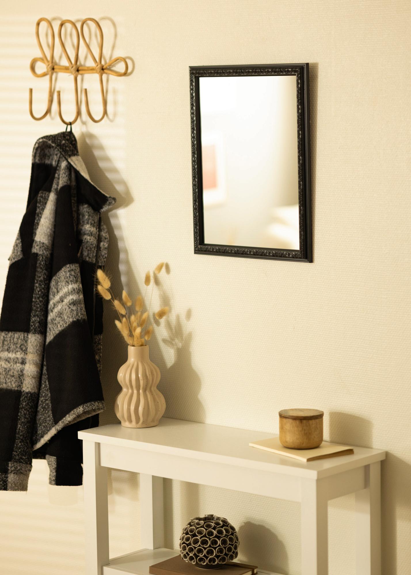 Ξεκινήστε τον επιλογέα κορνίζας »Η Nost Svart είναι μια σειρά από καθρέφτες τοίχου. Η κορνίζα είναι πλούσια διακοσμημένη με ακανόνιστα σύμβολα που δίνουν μια κάπως μυστηριώδη εντύπωση.